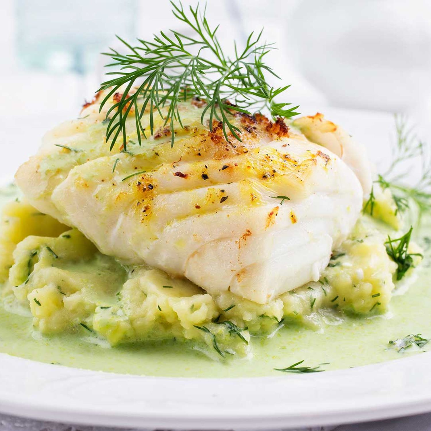 Die Fischfilets mit den Kartoffeln anrichten, mit Dill und etwas Zitronenabrieb dekorieren.