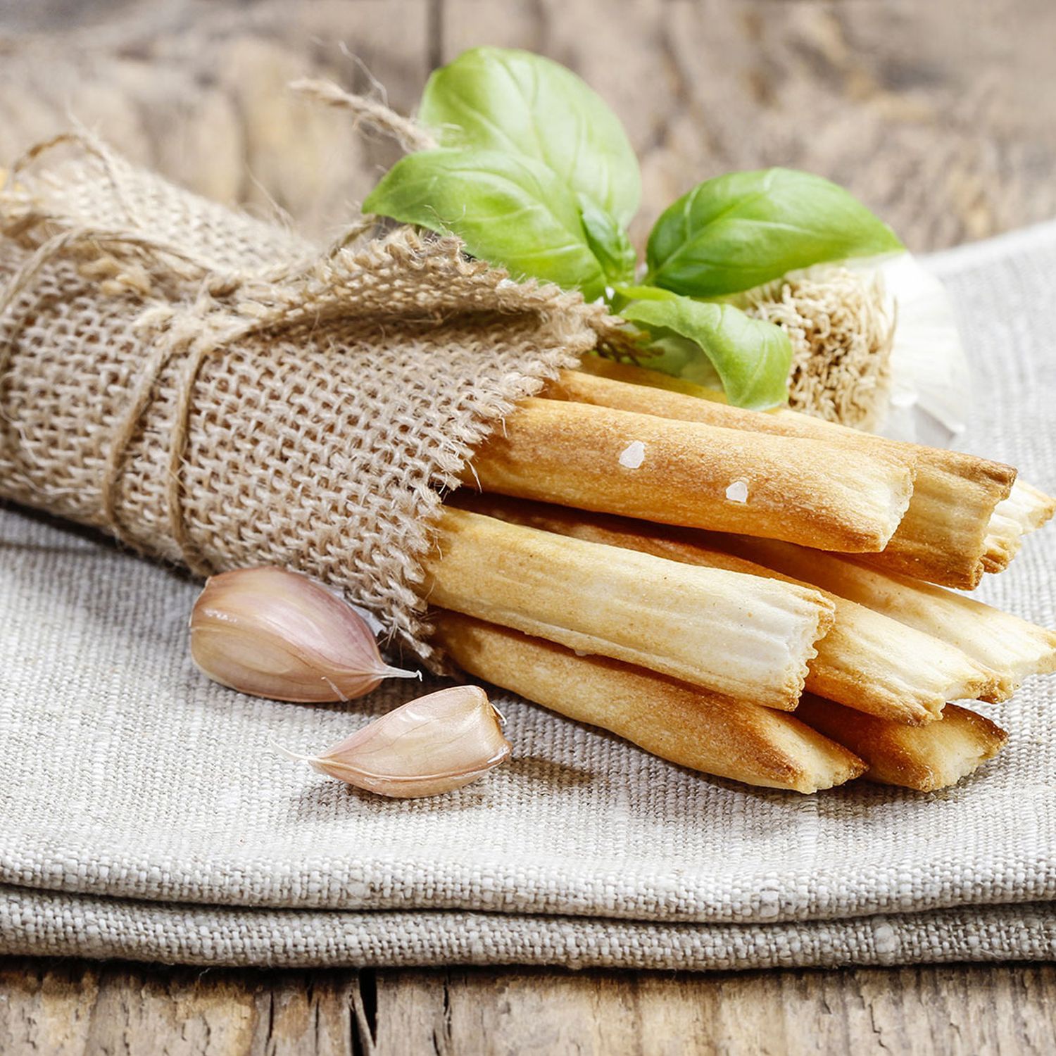 Auf einer bemehlten Arbeitsfläche zu dünnen Teigsträngen formen und diese auf ein mit Backpapier belegtes Backblech legen. Bei 200 °C ca. 10 Minuten backen.