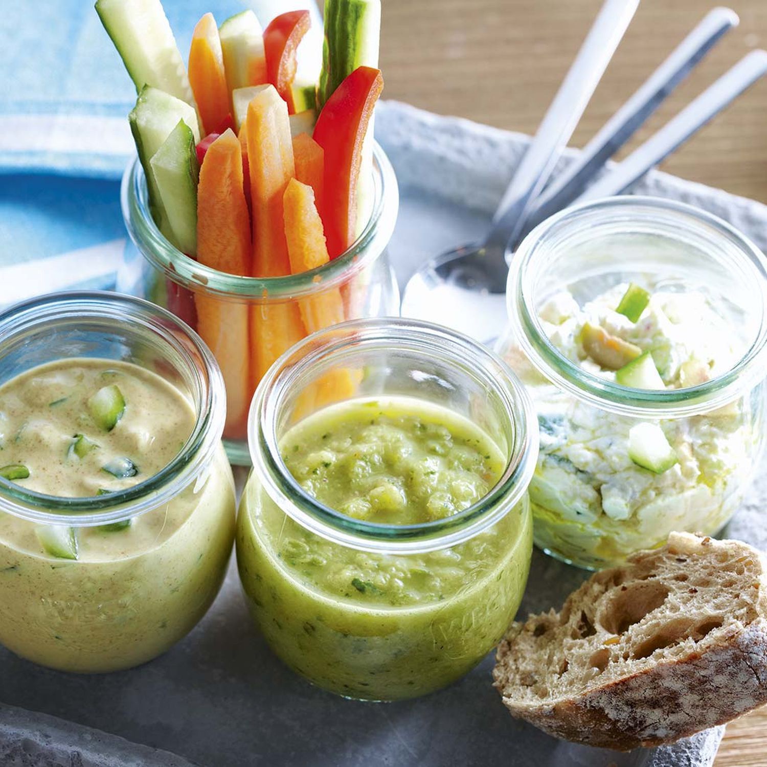 Dreierlei Dips von der Gurke mit Rohkost-Gemüsesticks