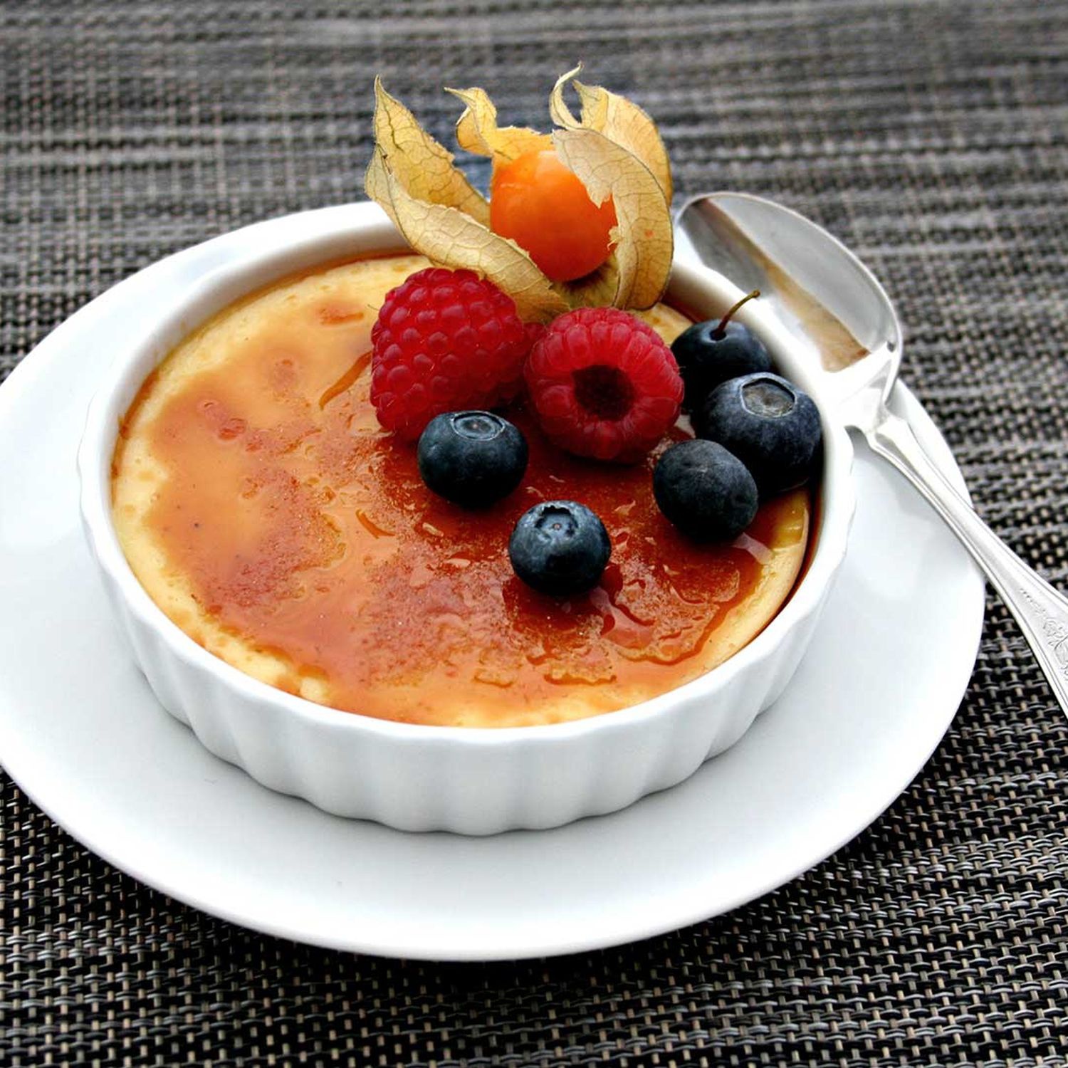 Zum Schluss wird die Crème mit braunem Zucker bestreut und mit einem Bunsenbrenner karamellisiert.