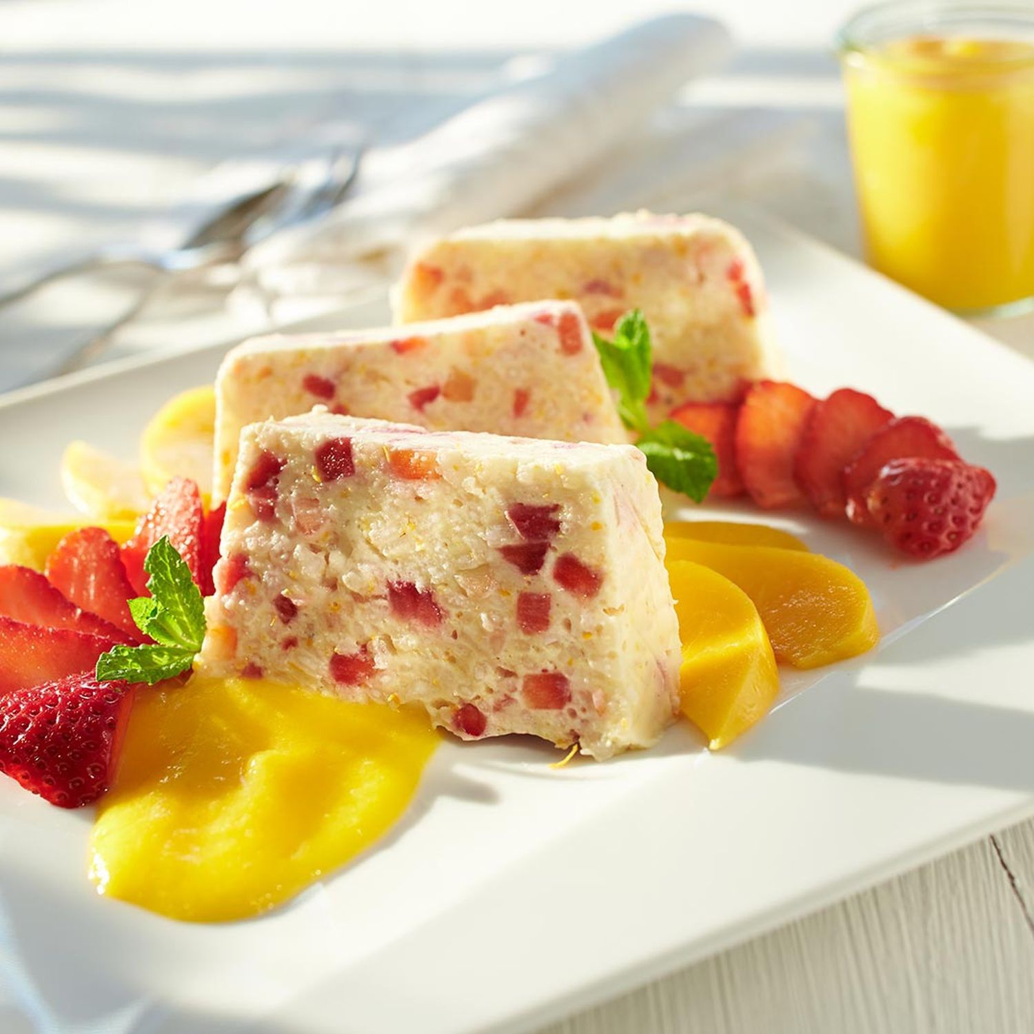 Probiere die Erdbeer-Milchreisterrine mit Pfirsichpüree. Schnelle Zubereitung dank der Schritt-für-Schritt-Anleitung.