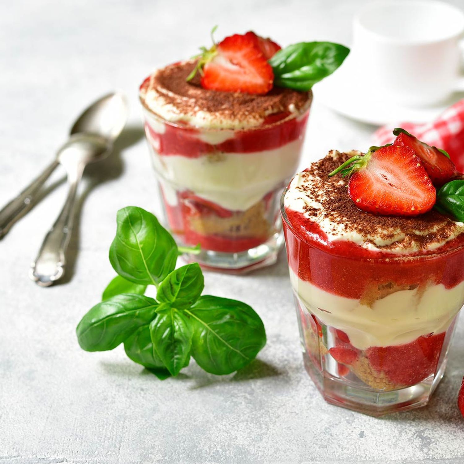 Das leckere Erdbeer-Tiramisu ist schnell und einfach zubereitet, der Basilikum verleiht dem sommerlichen Dessert den nötigen Frischekick.