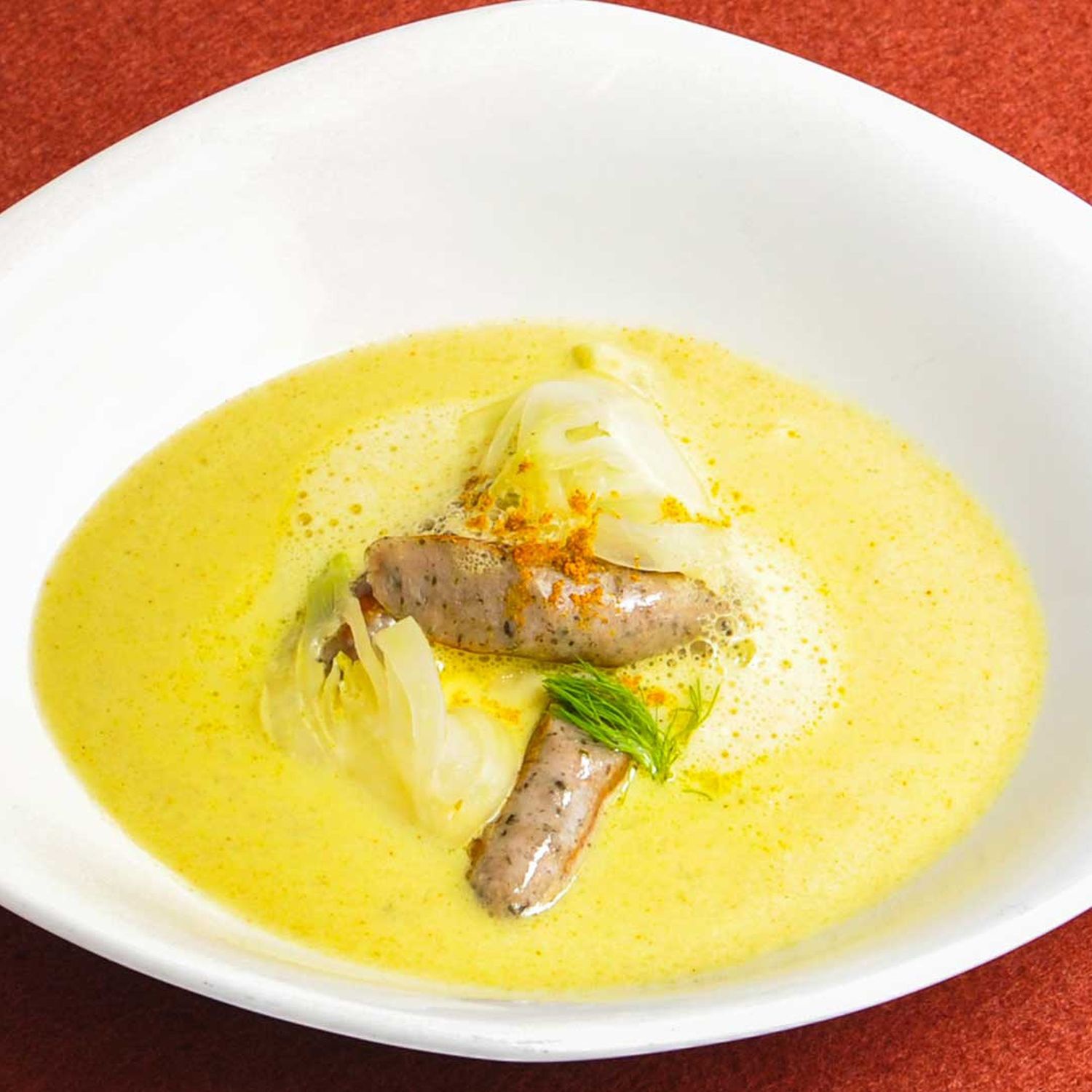 Fenchel-Curry-Suppe mit Rostbratwürsteln