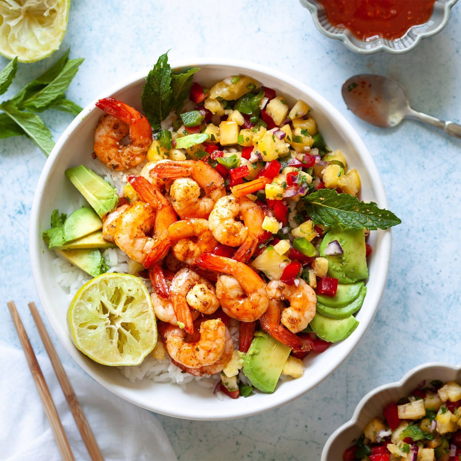 Garnelen-Bowl mit Ananas-Salsa