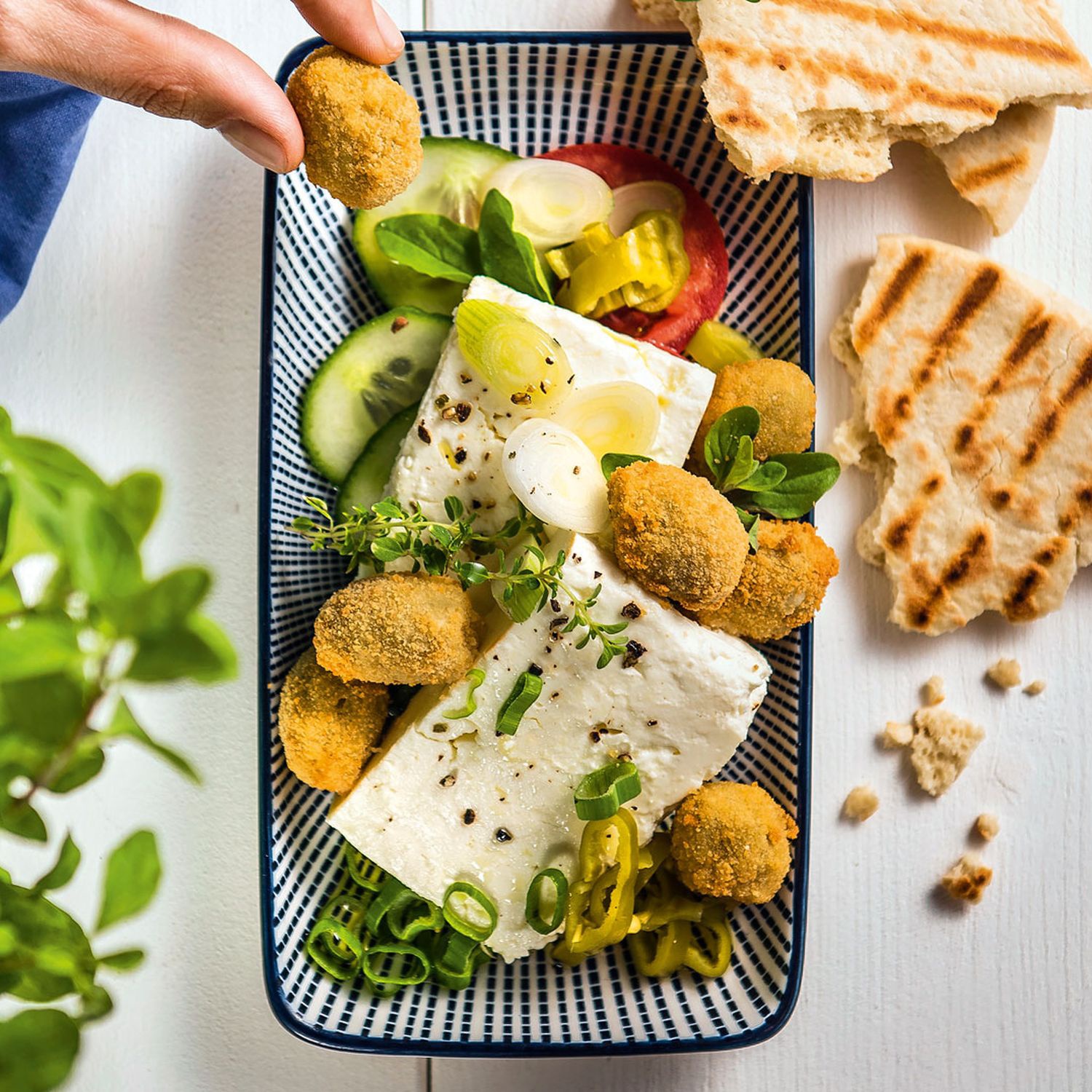 Nicht nur für Vegetarier ein Genuss: so leicht und doch köstlich sind die gebackenen Oliven auf mariniertem Feta mit getoastetem Pitabrot. Lass es dir schmecken!