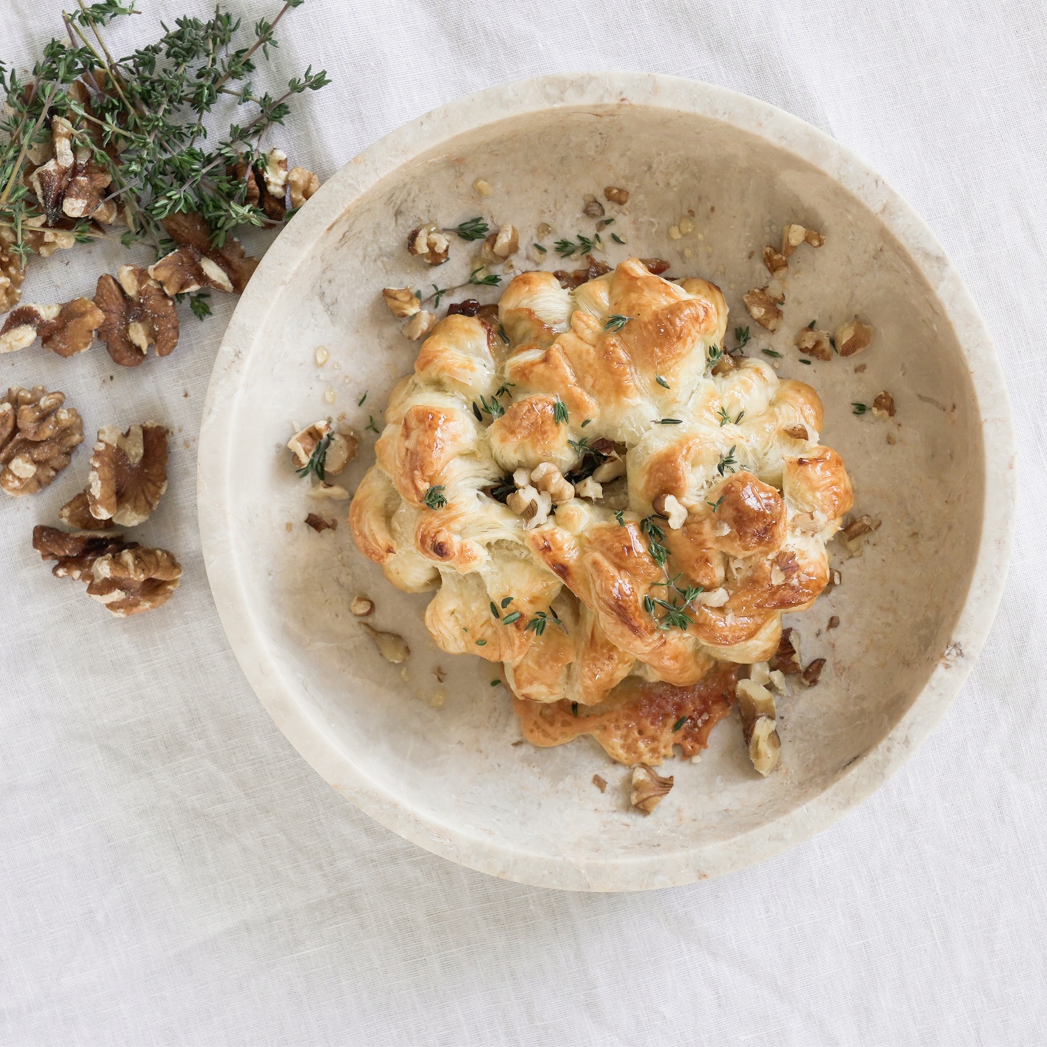 Dieses herbstliche Rezept für gebackenen Bourgeron vereint köstlichen Le Bourgeron Käse mit aromatischen Walnüssen und frischem Thymian – ideal, um die warmen Aromen der Saison auf den Teller zu bringen. Umhüllt von goldenem Blätterteig und einem Hauch Honig entsteht so eine herzhafte und zugleich fein-nussige Leckerei, die perfekt zu kühleren Tagen passt. Einfach im Ofen backen und genießen!