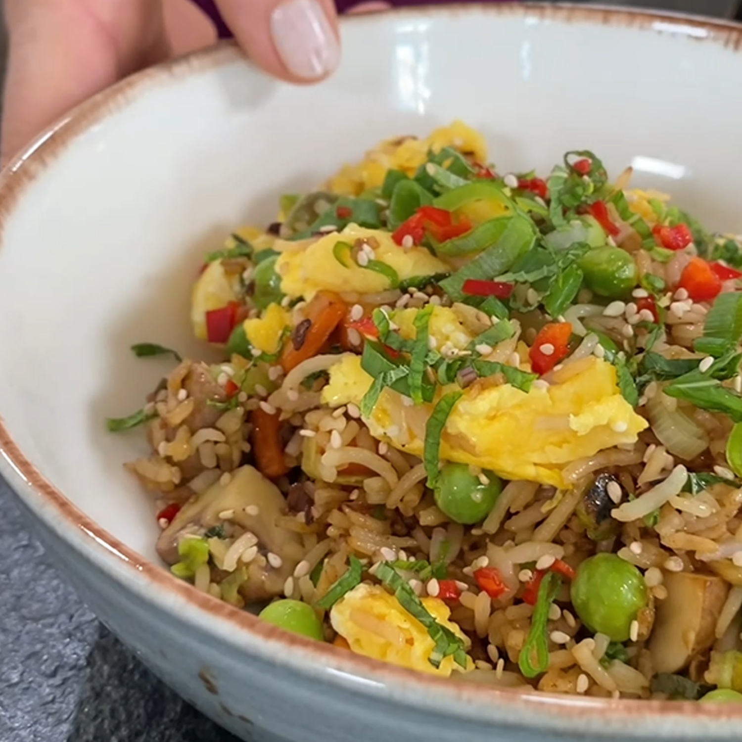 Gebratener Reis mit Gemüse und Ei