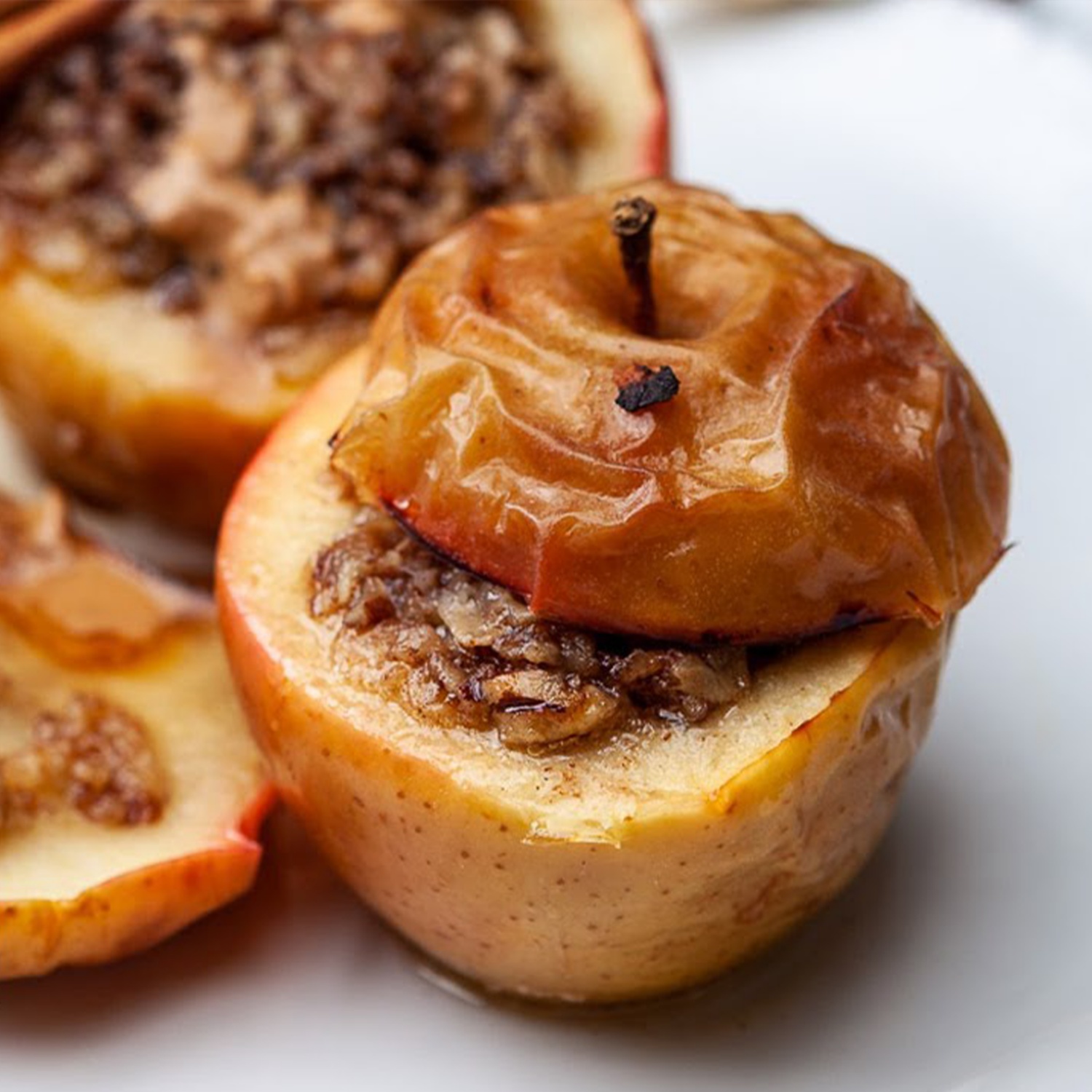 Etwa 30 Minuten backen, je nachdem wie weich sie sein sollen. Die Äpfel aus dem Ofen nehmen und warm servieren.