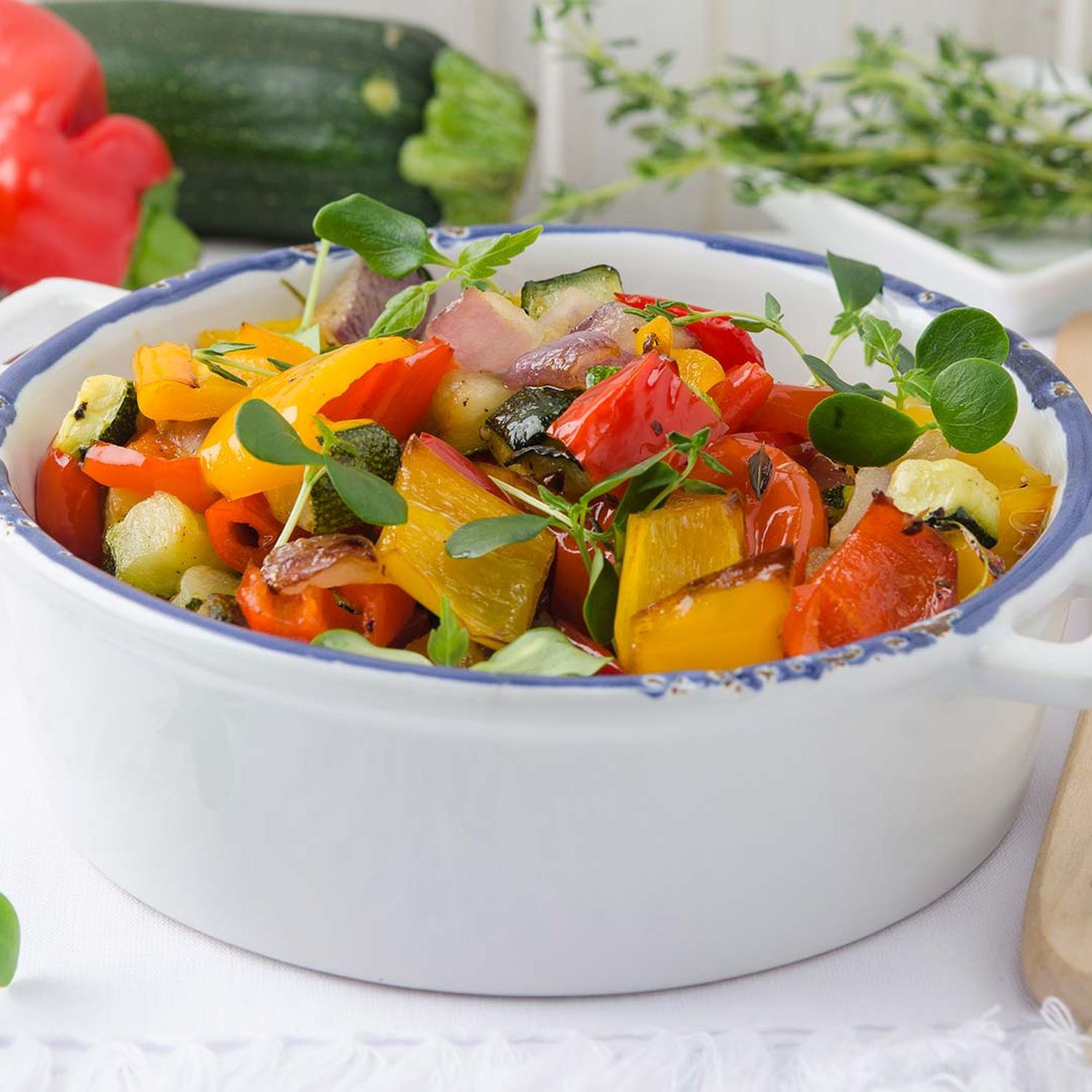 Das gegarte Ofengemüse ist perfekt für die warmen Tage. Es ist nicht nur eine leichte Kost, sondern auch schnell im Airfryer zubereitet. Lass es dir schmecken.