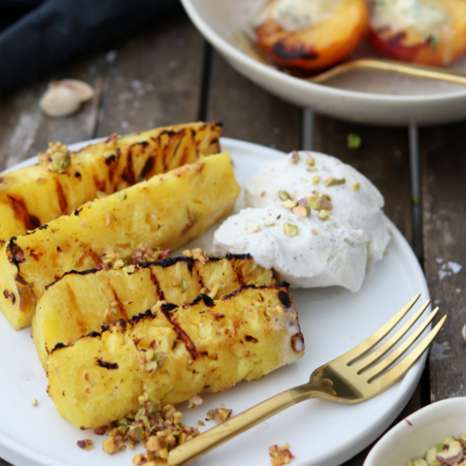 Gegrillte Ananas mit Pistazien-Pesto und Vanilleeis