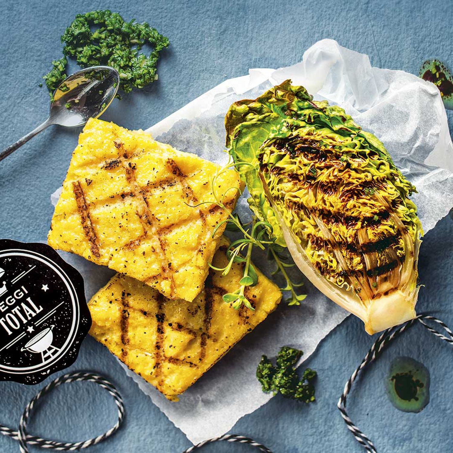 Gegrillte Polentaschnitte mit Romanasalatherzen und Petersilien-Gremolata