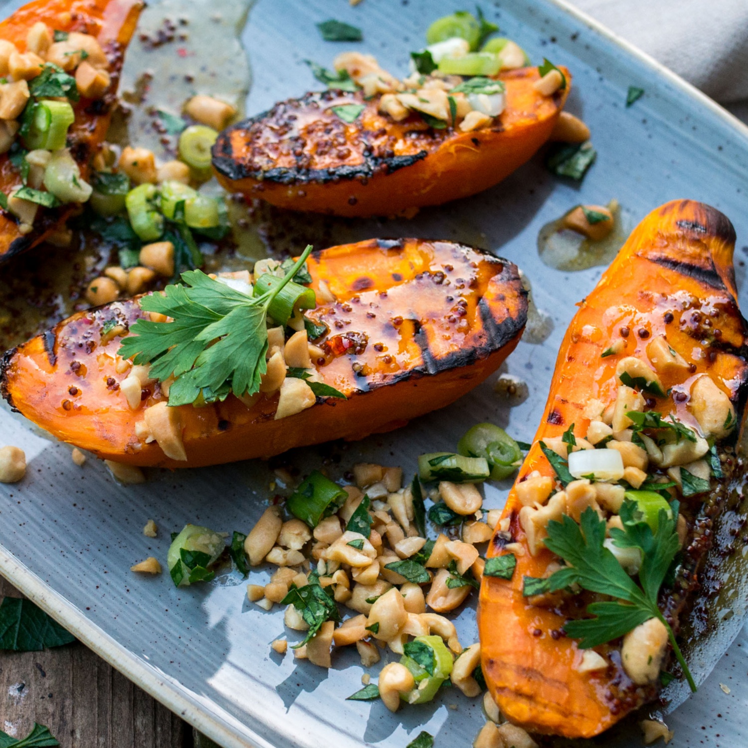 Gegrillte Süßkartoffeln mit Erdnuss-Dressing