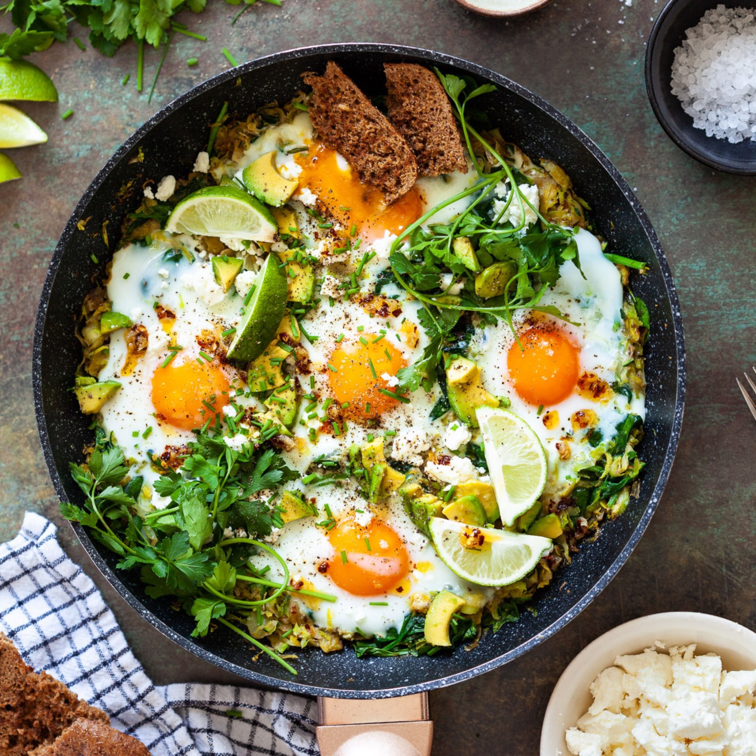 Das Shakshuka mit Vollkornbrotscheiben servieren.