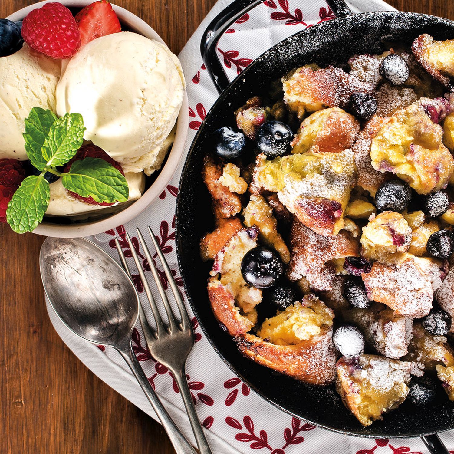 Heidelbeer-Kaiserschmarren mit Vanilleeis