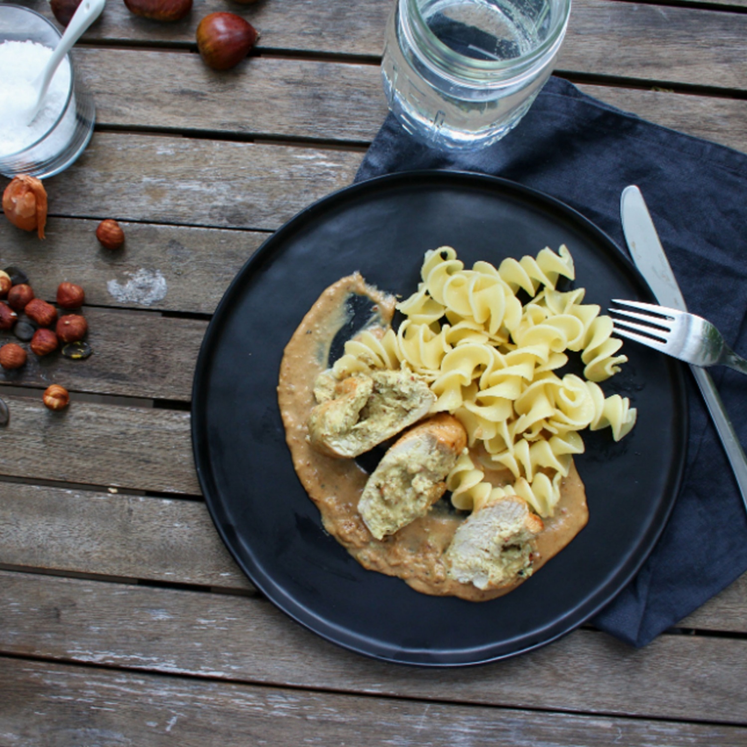 Hühnerbrust mit Nussfüllung und Maroni-Soße