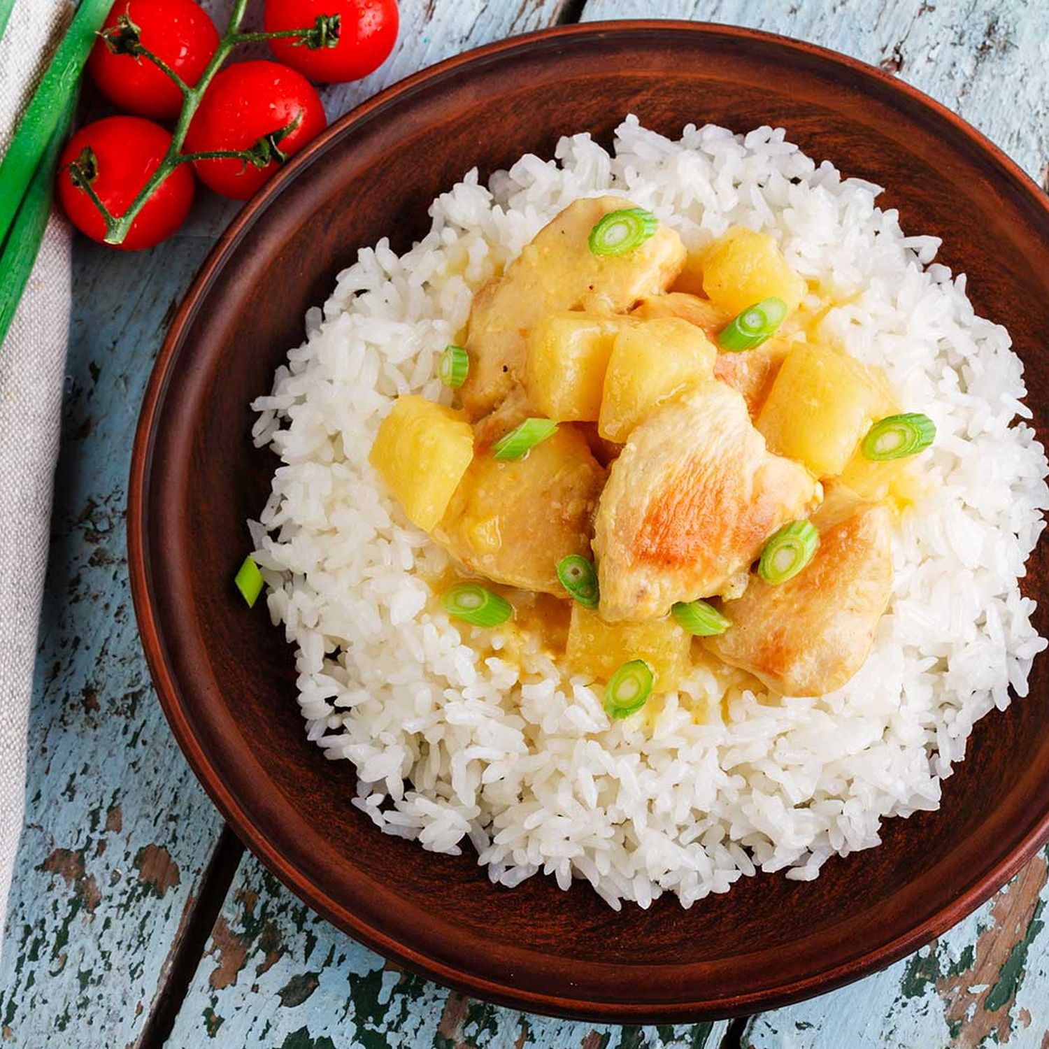 Anschließend mit Schlagobers ablöschen und mit Salz, Paprikapulver und Curry abschmecken. Jungzwiebeln und Melonenstücke zufügen und alles zusammen 3 Minuten köcheln lassen.