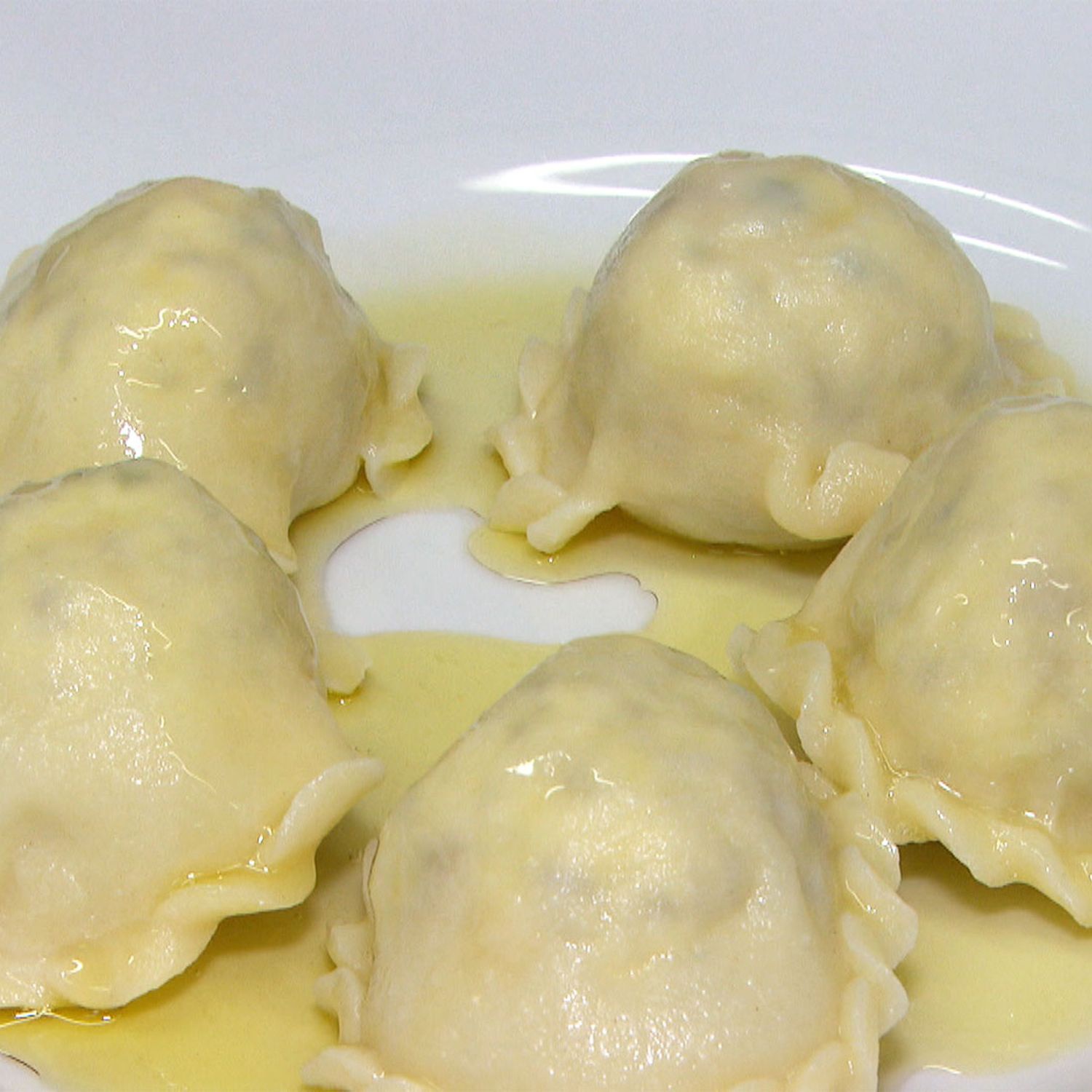 Angerichtet werden die Kasnudeln mit zerlassener Butter oder zerlassenem Butterschmalz, bestreut wird der Teller mit gehacktem Schnittlauch.