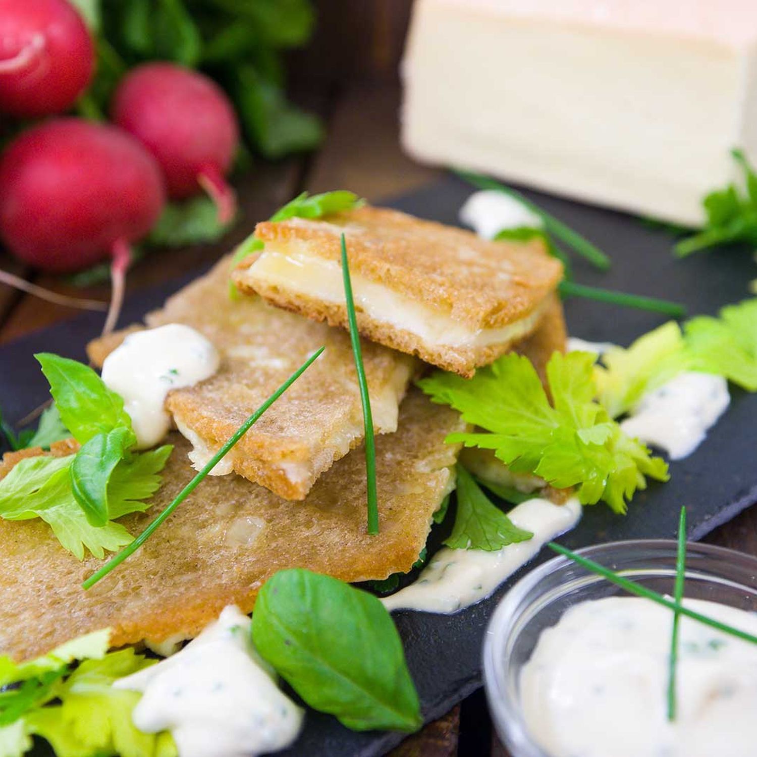 Käse in der Brotkruste mit Radieschen-Kräuter-Salat