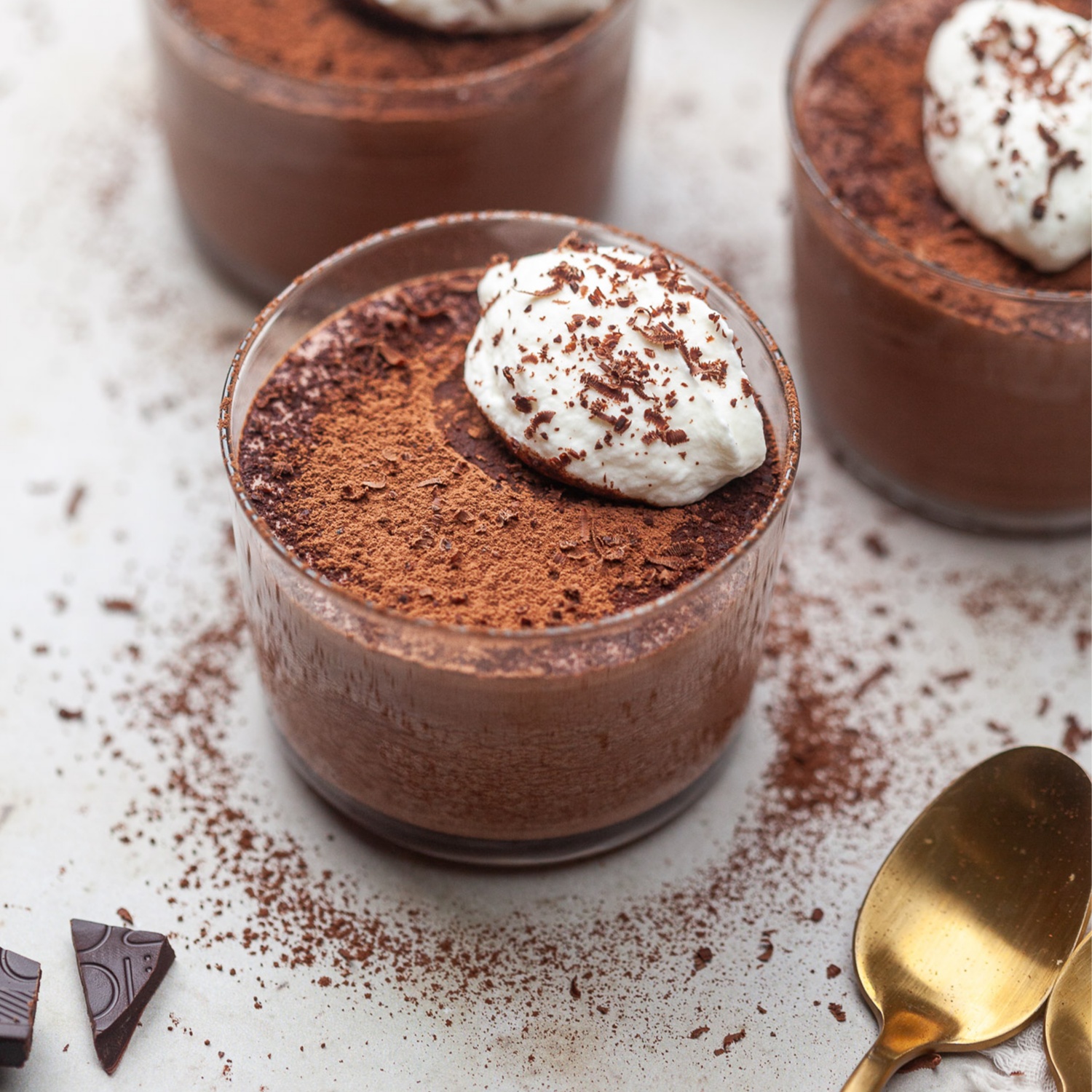 Vor dem Servieren kannst du die Mousse nach Belieben mit Schokoladenraspeln, einem Hauch Kakaopulver oder einem Klecks Schlagsahne garnieren.