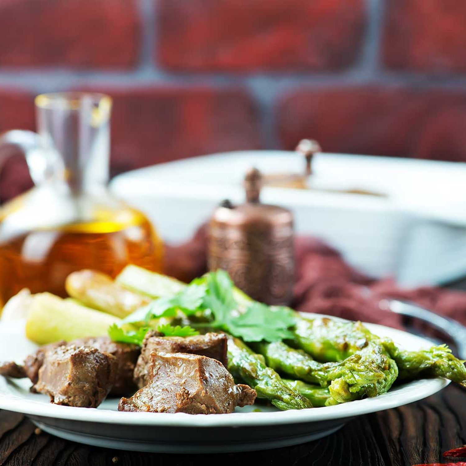 Kalbsmedaillons mit Polenta, grünem Spargel und Petersiliensauce
