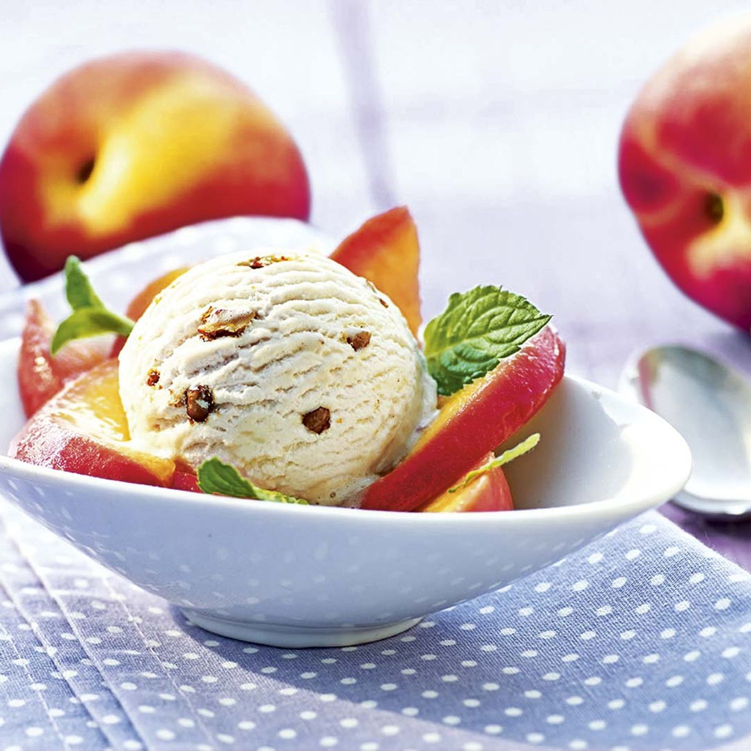 Karamellisierte Nektarinen mit Walnusseis und frischer Minze