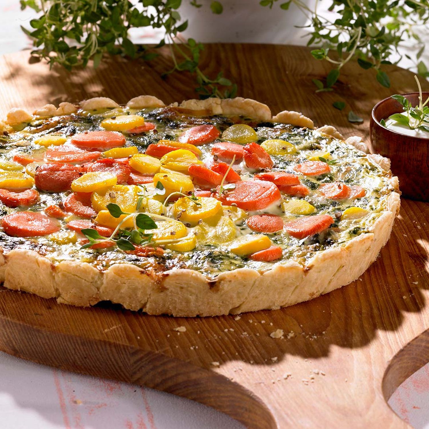 Probieren Sie die vegetarische Karottenquiche mit Hilfe der Schritt-für-Schritt-Anleitung. Die Quiche ist ein Schmaus für Augen und Gaumen. Gutes Gelingen.