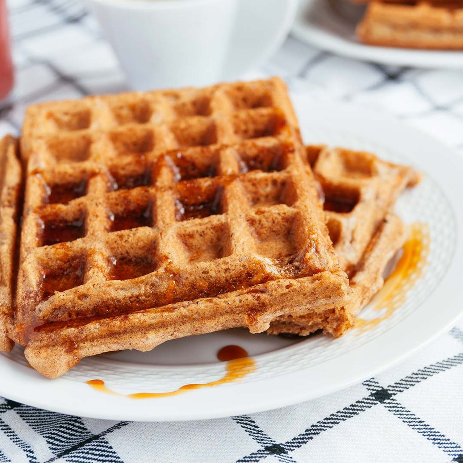 Den Teig in das heiße und eingefettete Waffeleisen füllen und nacheinander knusprige Waffeln herausbacken – der Teig reicht für ca. 8 Stück. Vor dem Servieren mit Staubzucker bestäuben.