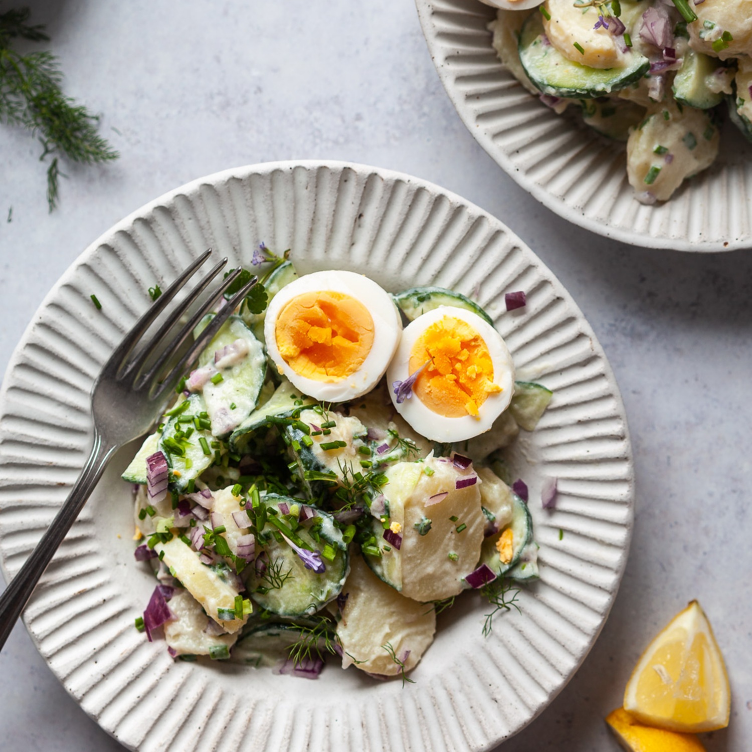 Dieses Rezept für Kartoffel-Gurkensalat ist eine köstliche Kombination aus zarten Kartoffeln und knackiger Gurke, die von einem cremigen Sauerrahm-Dressing umgeben sind. Die Zugabe von gekochten Eiern sorgt für einen Proteinschub und macht ihn zu einer köstlichen Beilage, oder sogar zu einer leichten Mahlzeit für sich allein.