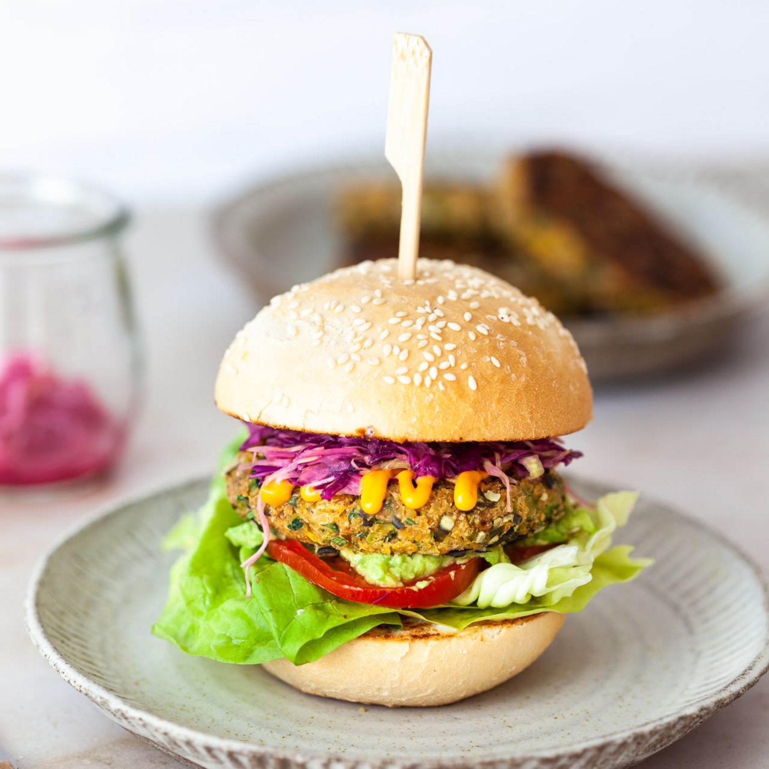 Burger geht auch ohne Fleisch. Dieser unfassbar leckere Kichererbsen Burger ist das pefekte Beispiel. Der Burger auf pflanzlicher Basis mit viel Gemüse scmeckt unglaub lecker. Probieren Sie dieses Gericht gleich selber aus!