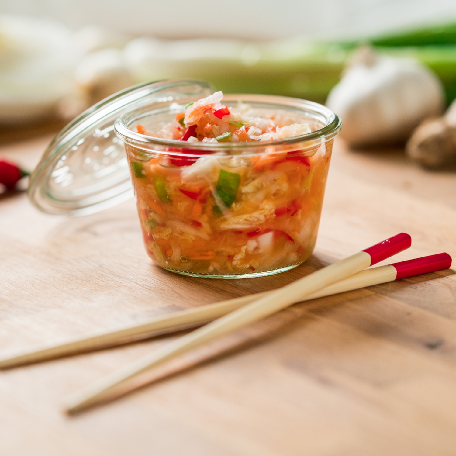 Für unsere Variante eines Kimchi braucht es keine exotischen Zutaten. Dennoch lässt sich damit einfach asiatisches Flair auf den Teller zaubern. Ausprobieren und vom Geschmack überraschen lassen!