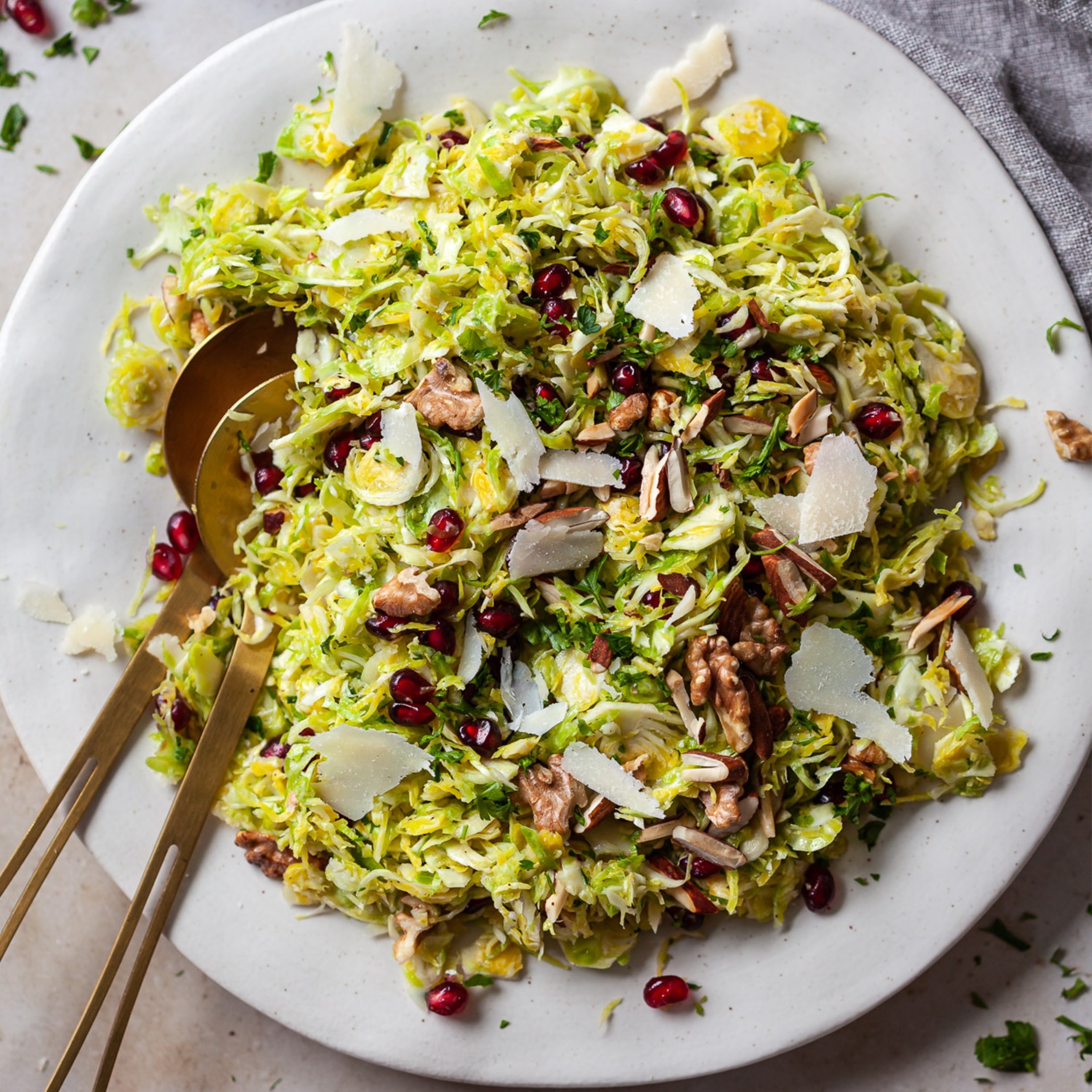 Eine wahre Vitaminbombe! Der knackige Kohlsprossen-Salat mit frischen Granatapfelkernen sorgt für gute Laune im Winter. Ob als Beilage oder Hauptspeise: er ist in jedem Fall ein Genuss!