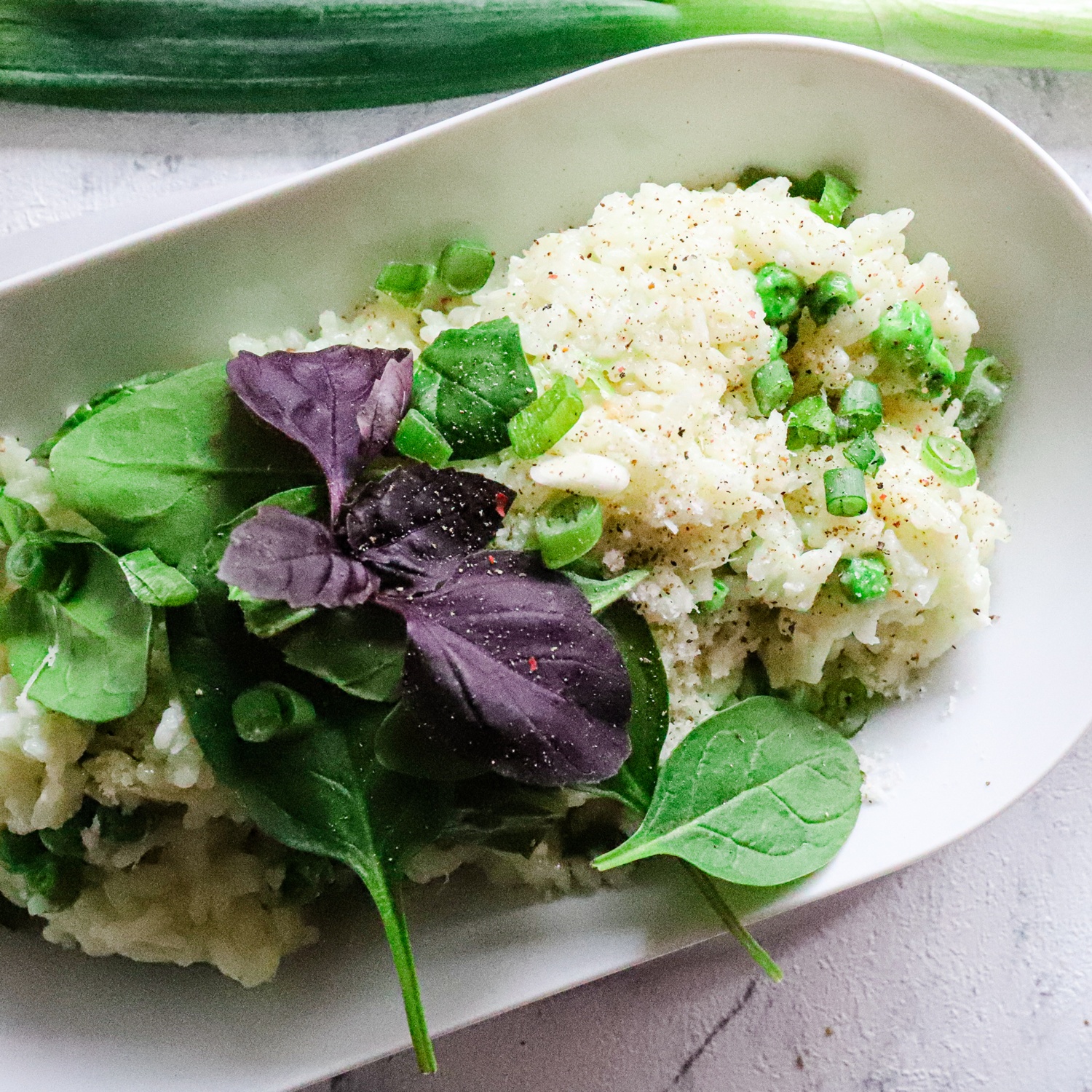 TK Erbsen untermischen, fertiggaren. Vor dem Servieren, den Grana Padano zugeben, würzen und anrichten.