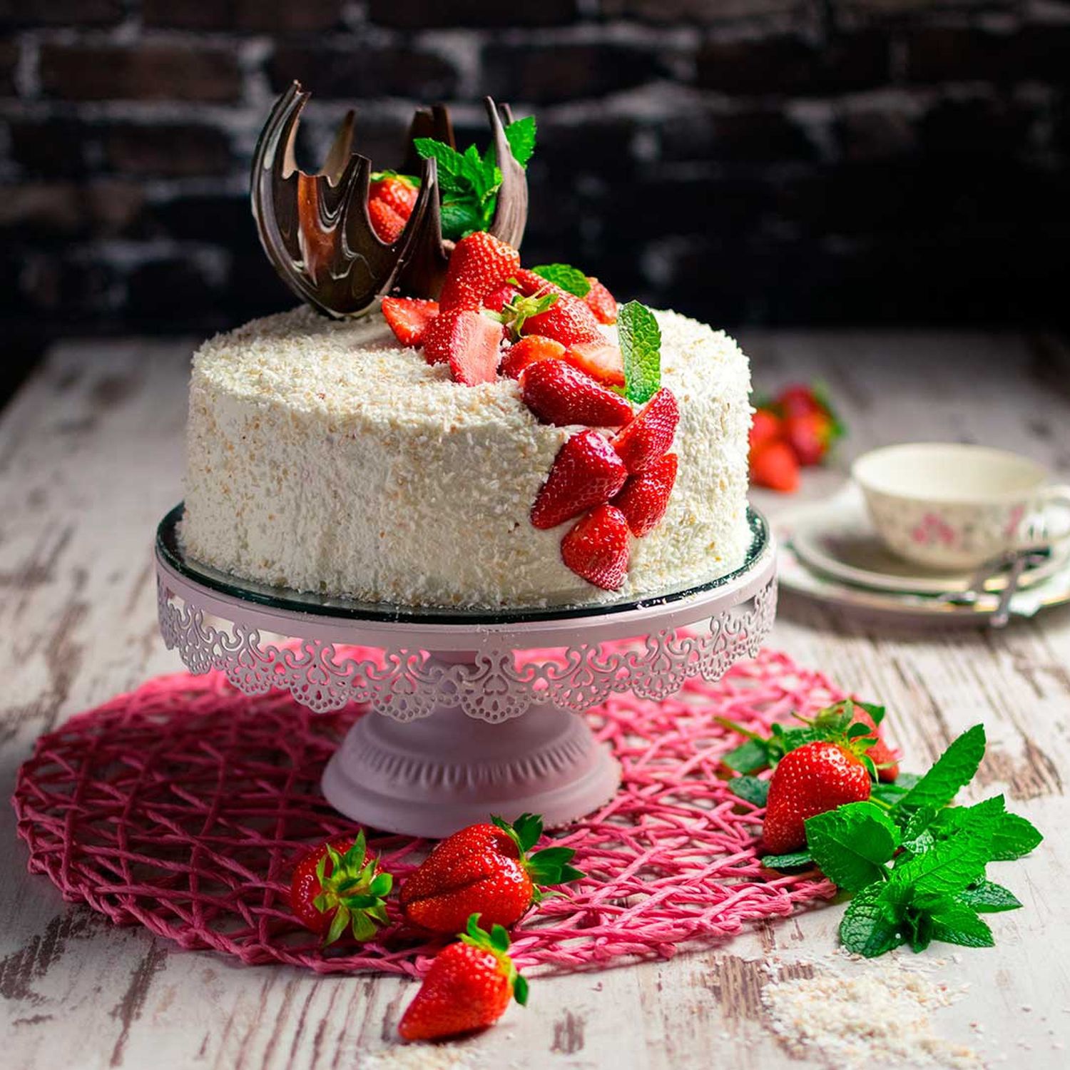 Kokosnusstorte mit Erdbeeren und Schokolade