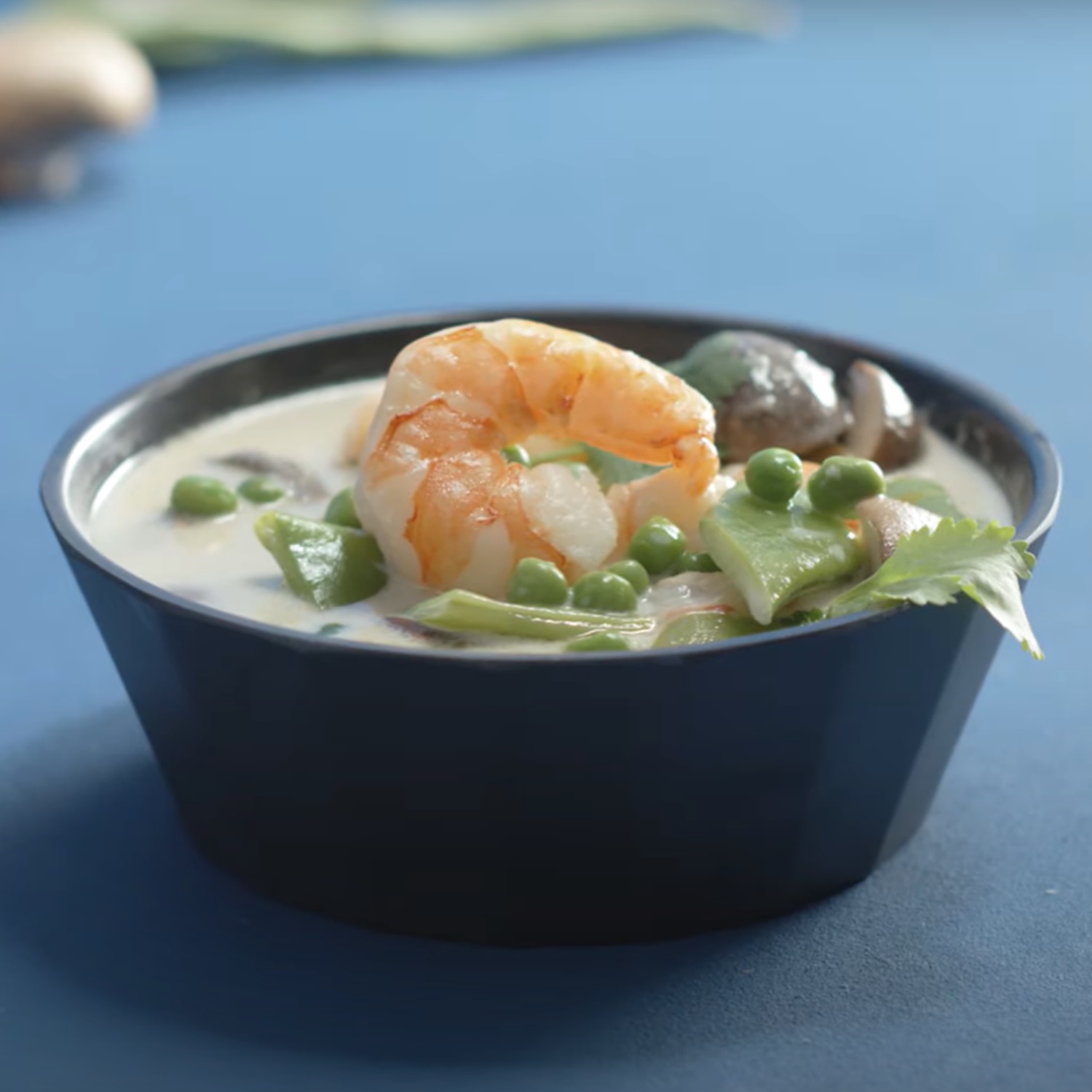 Last minute nach Thailand: Mit der authentischen und köstlich aromatischen Kokos Suppe mit Garnelen holen Sie sich Bangkok mit all seiner Schärfe ins eigene zu Hause – und das in nur 15 Minuten und ohne große Kochkenntnisse.
