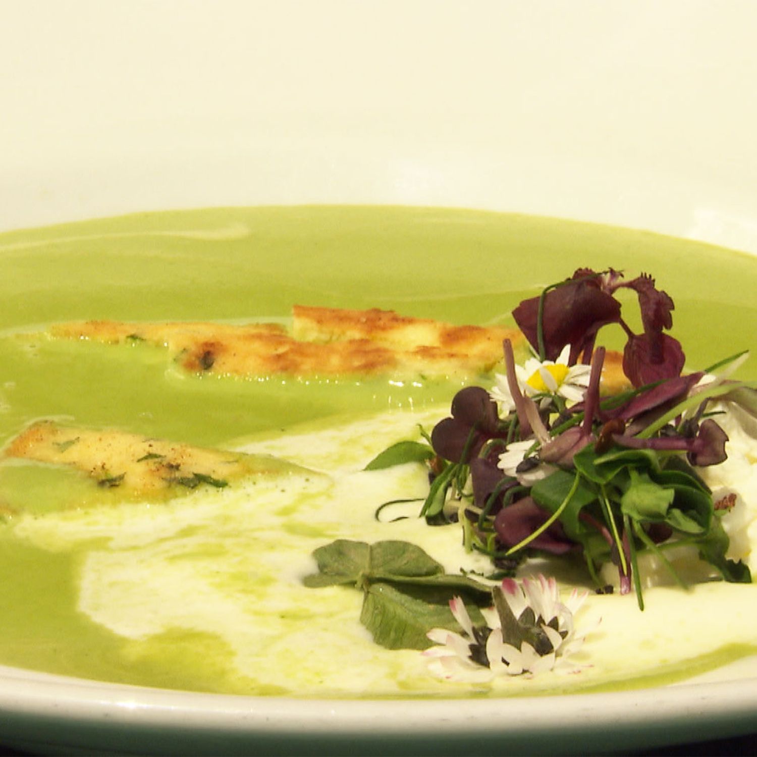 Die Kräutersuppe mit Wildkräuterschöberl ist eine fabelhafte Sommersuppe. Pflücken Sie bei einem Spaziergang gleich die Zutaten dafür!