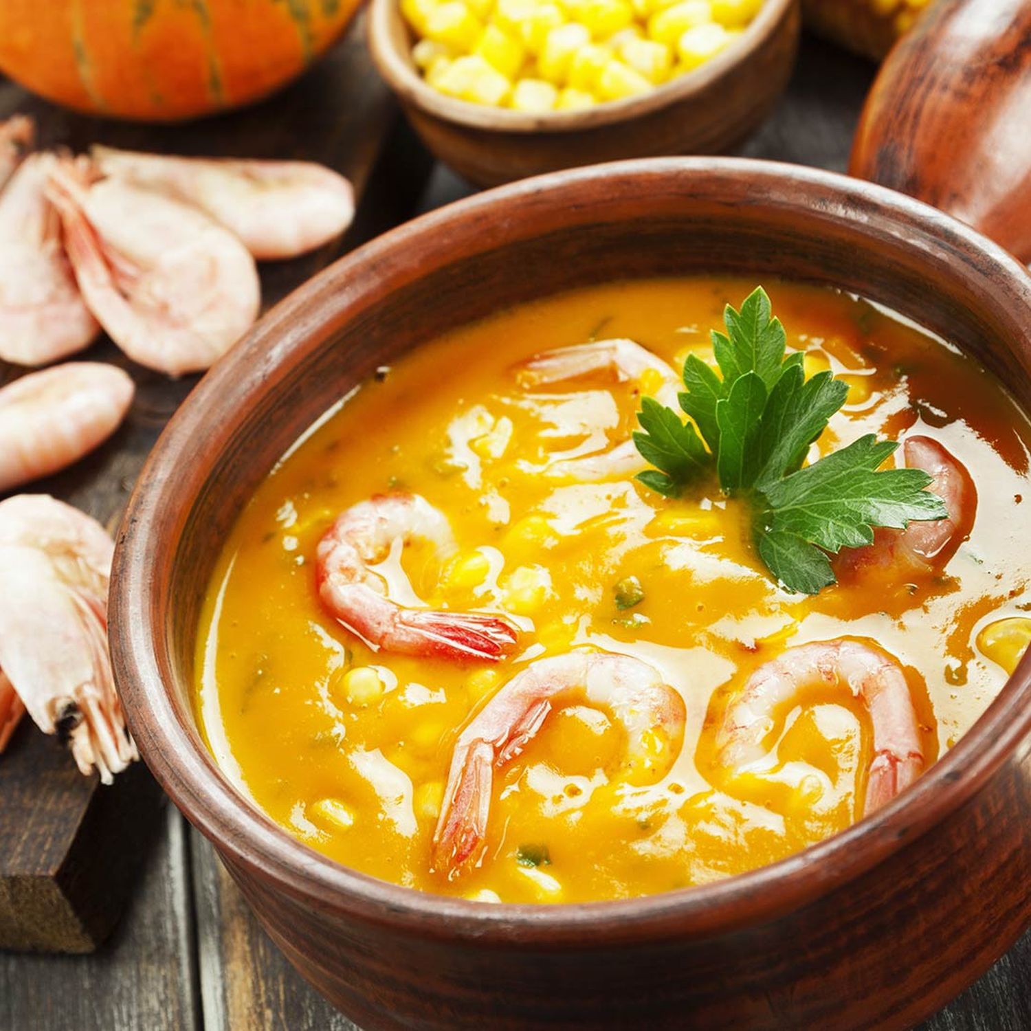Kürbis-Paprika-Ragout mit Garnelen