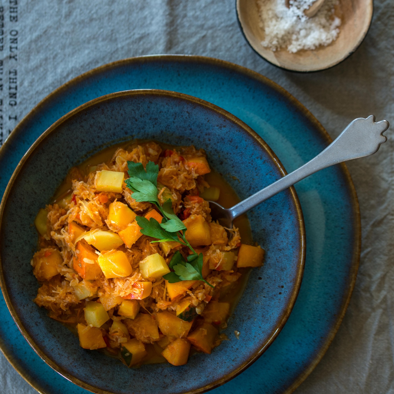 Auf der Suche nach einem köstlichen Gulasch ohne Fleisch? Unser Kürbisgulasch ist nicht nur einfach nachzukochen, sondern auch noch preiswert! Viel Spaß beim Nachkochen.