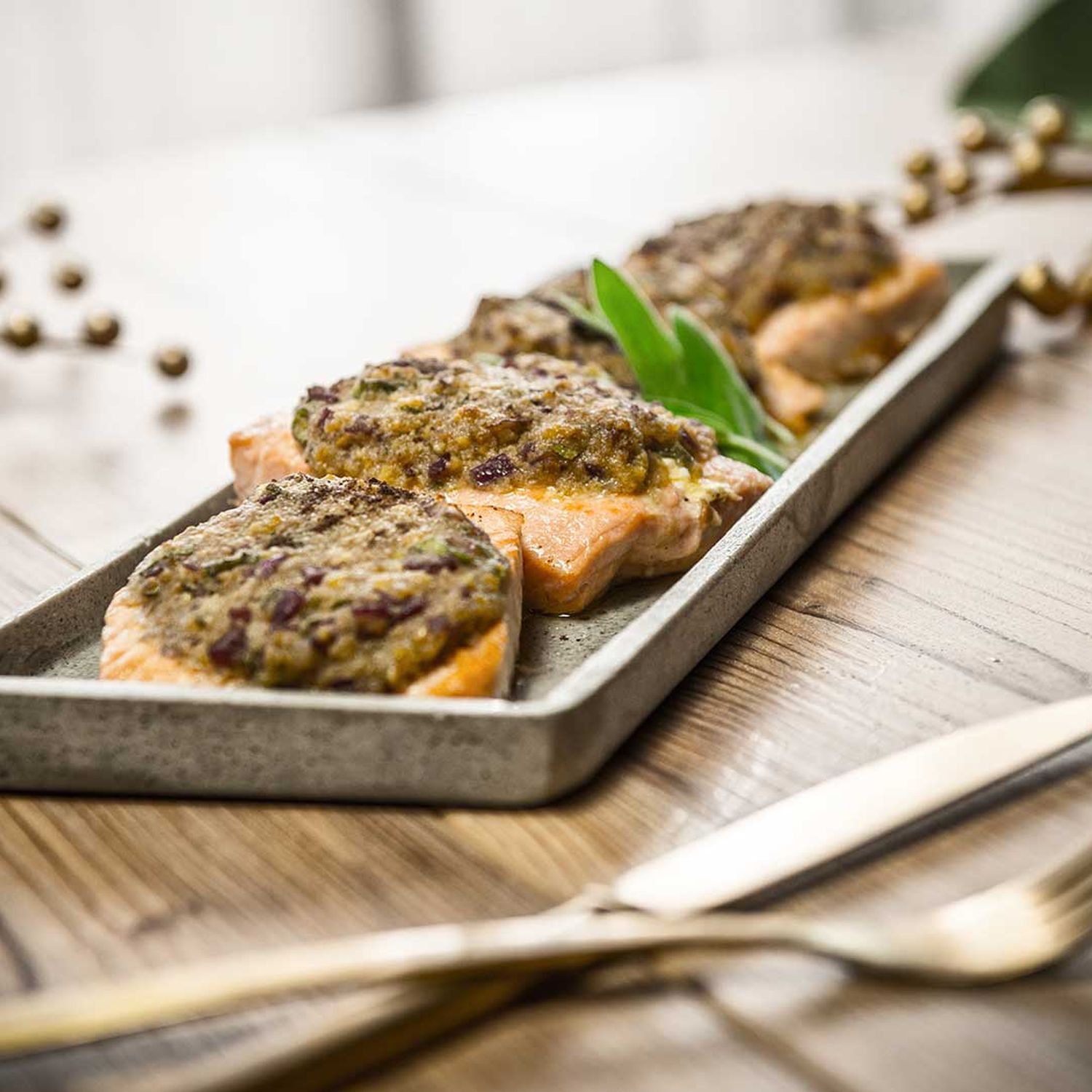 Die Kombination aus herzhaft und süß macht die Hauptspeise bestimmt zum Highlight Ihres Weihnachtsessens! Probieren Sie den Lachsrücken mit Lebkuchenkruste – die Schritt-für-Schritt-Anleitung hilft Ihnen dabei!