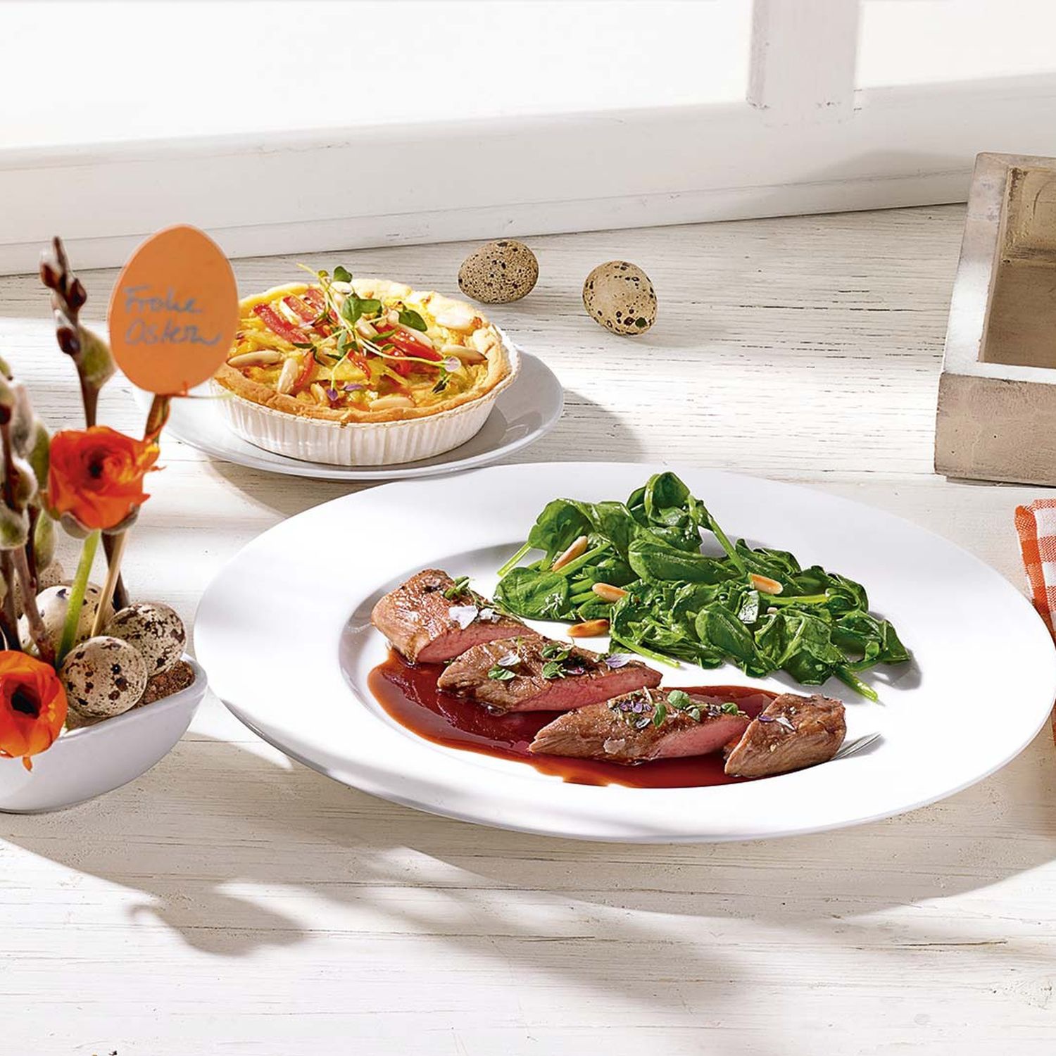 Lammfilet mit Balsamico Sauce und Kartoffel-Karotten-Tarte