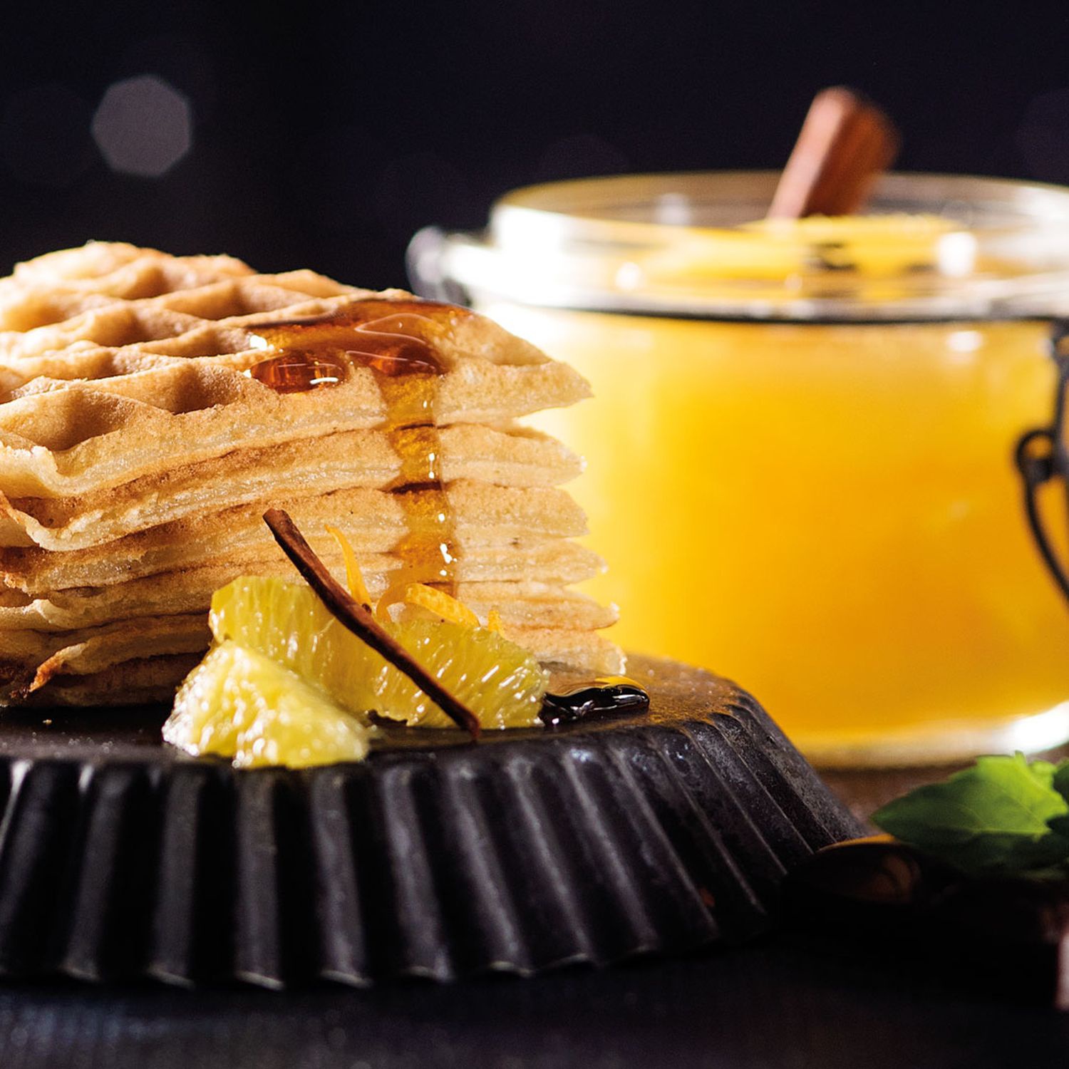 Lebkuchenwaffeln mit warmem Orangenragout
