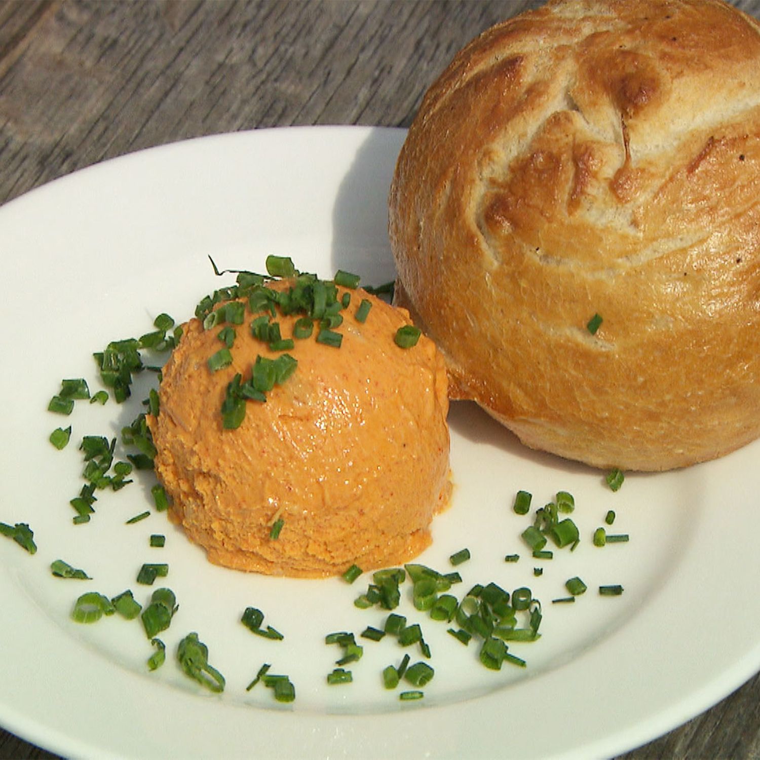 Die Zutaten in der angegebenen Reihenfolge zusammenrühren. Mit Schnittlauch oder einer Prise edelsüßem Paprika, Gebäck oder Salzstangerln servieren.