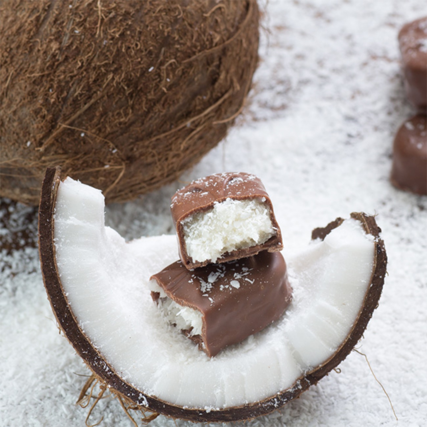 Zuerst die Kokosmilch mit dem Protein Pulver und dem Süßstoff vermischen und so lange rühren, bis keine Klumpen mehr vorhanden sind. Dann Kokosraspeln hinzugeben und weiter umrühren. Masse fest zusammen drücken und danach mindestens 30 Minuten in den Kühlschrank stellen.