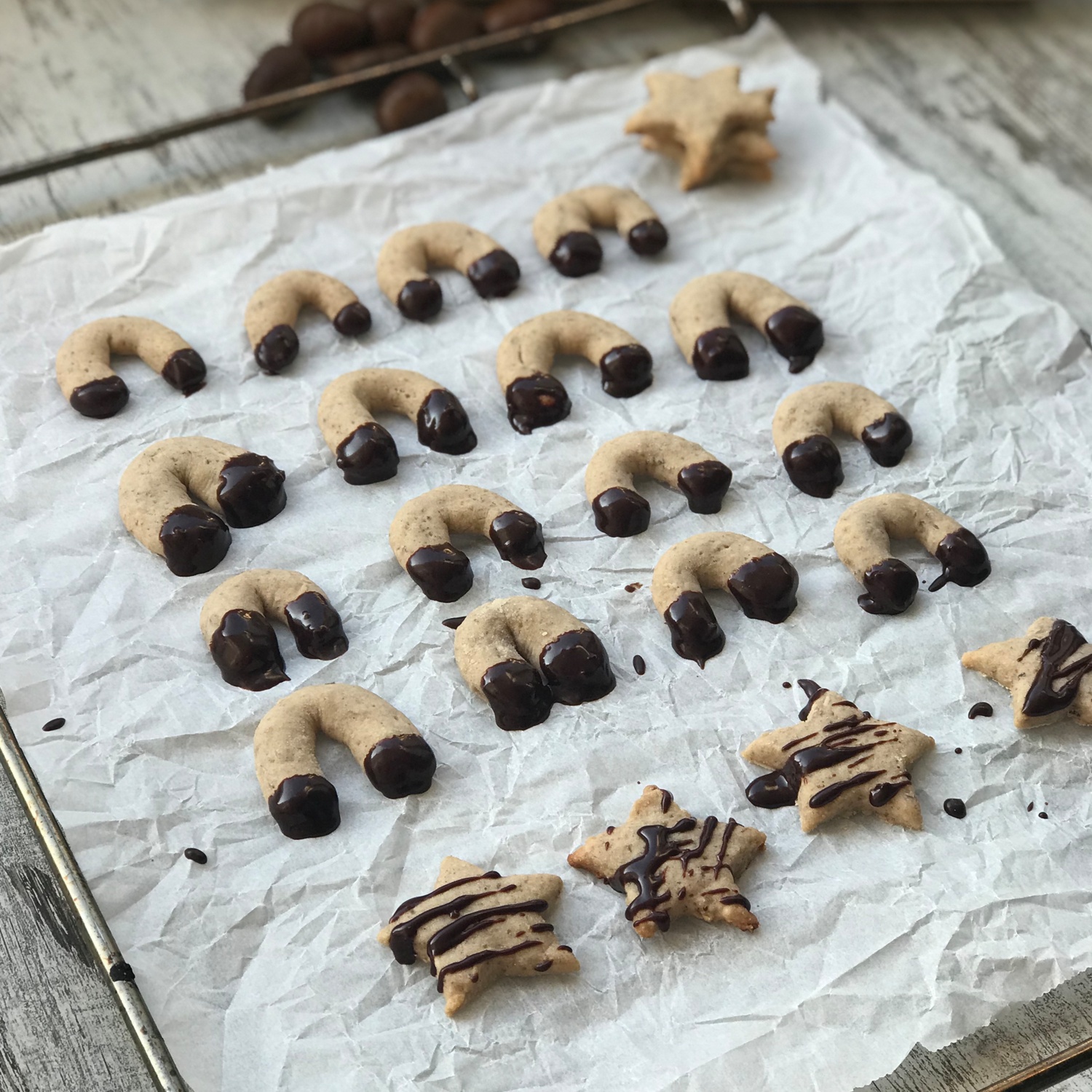 Zum Schluss noch etwas Kochschokolade schmelzen und die Enden der Kipferl eintauchen – trocknen lassen und fertig!