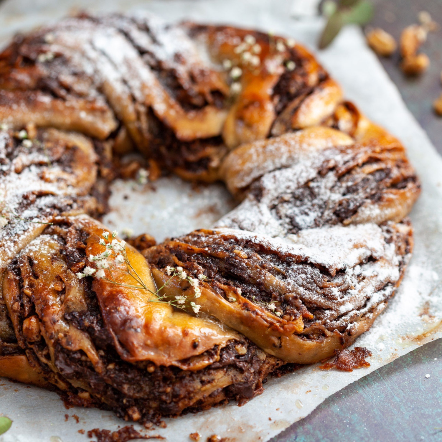 Dieser Nuss-Schokokranz ist einfach nur köstlich und der perfekte Begleiter zu deinem Nachmittasgkaffee. Am besten gleich nachbacken!