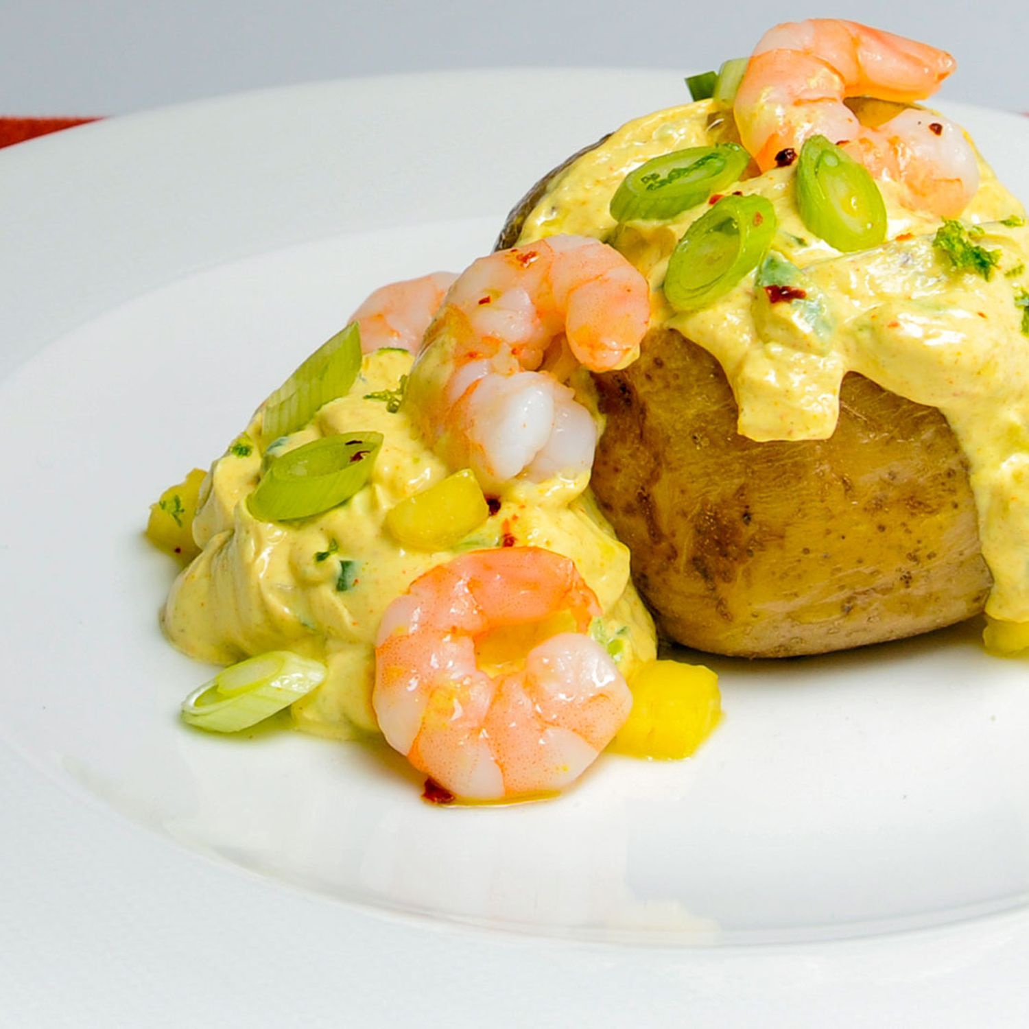 Die Ofenkartoffel mit süßem Garnelendip passt perfekt als Beilage zu jeglichem Fleisch. Aber auch serviert mit einem Salat ist sie ein wahrer Genuss.