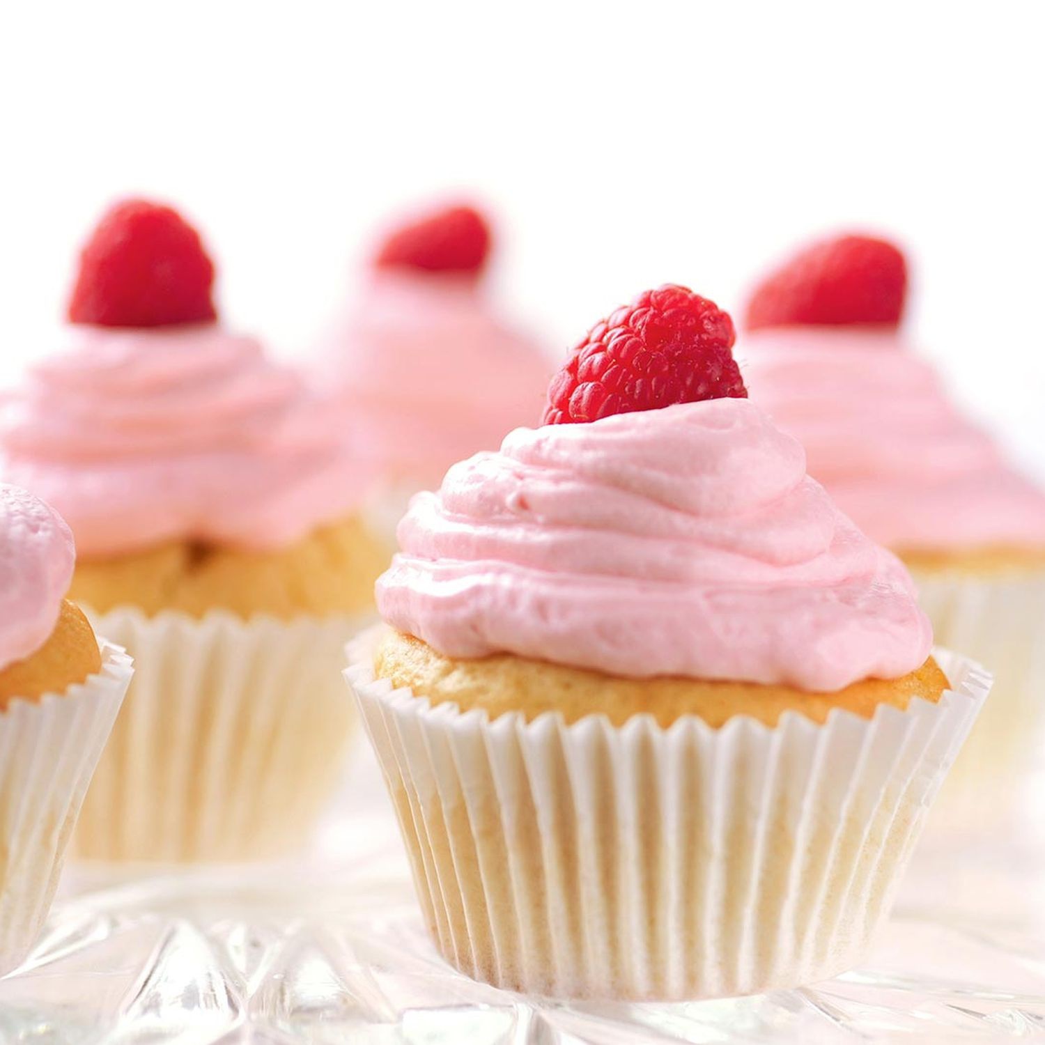 Nun die Cupcakes noch mit einer frischen Himbeere garnieren und genießen!