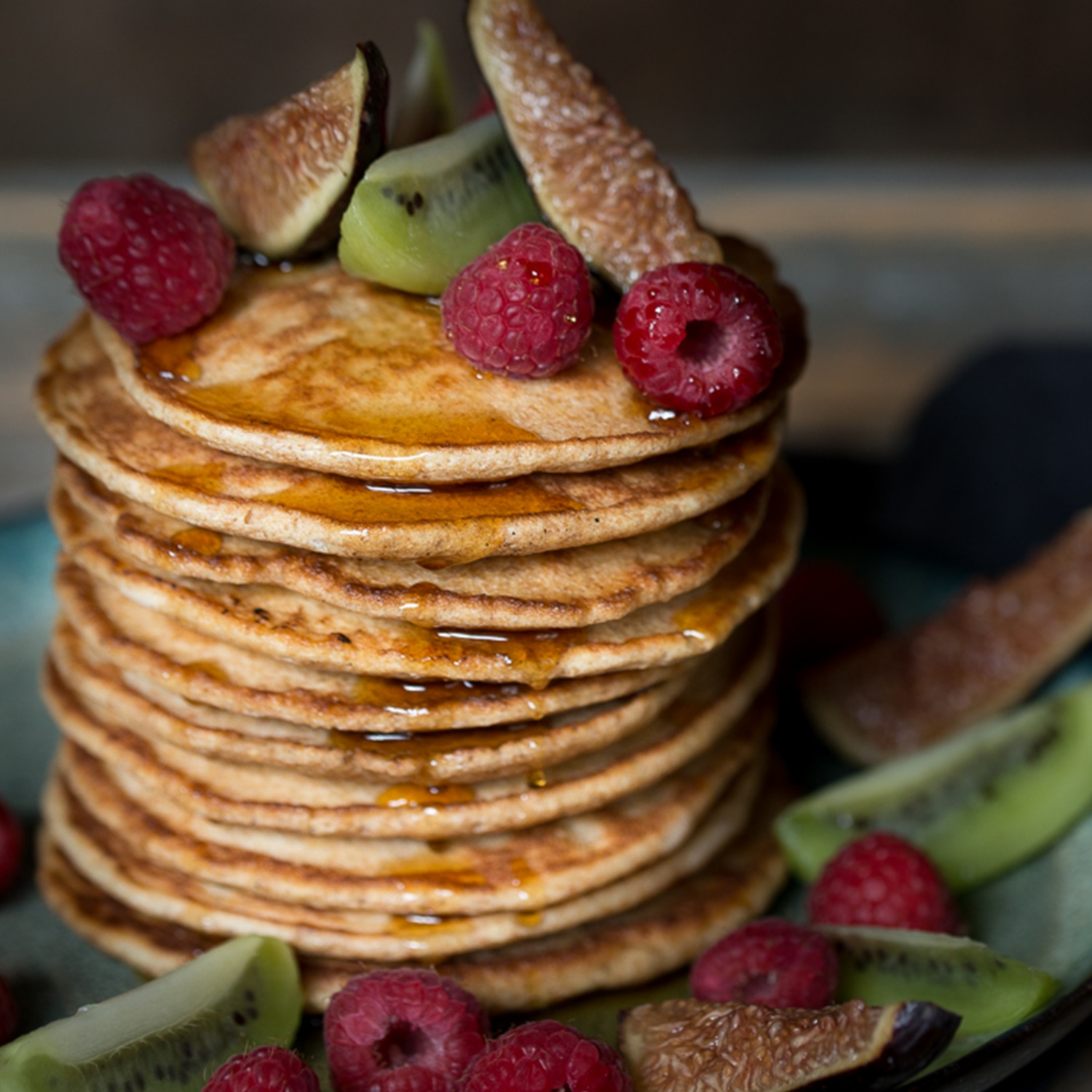 Ein perfekter Start in den Tag: flaumige Pancakes mit frischen Früchten sind der Hit auf jedem Brunch- oder Frühstücks-Tisch!
