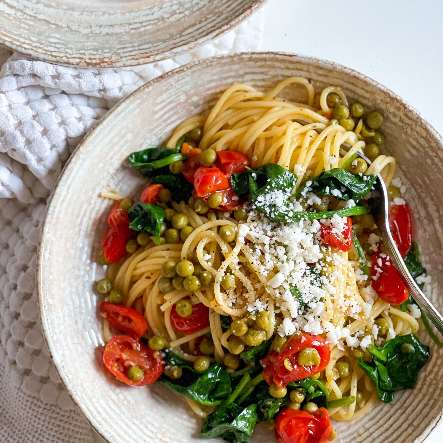 In einer weiteren Pfanne die Erbsen und den Babyspinat in Butter anbraten.