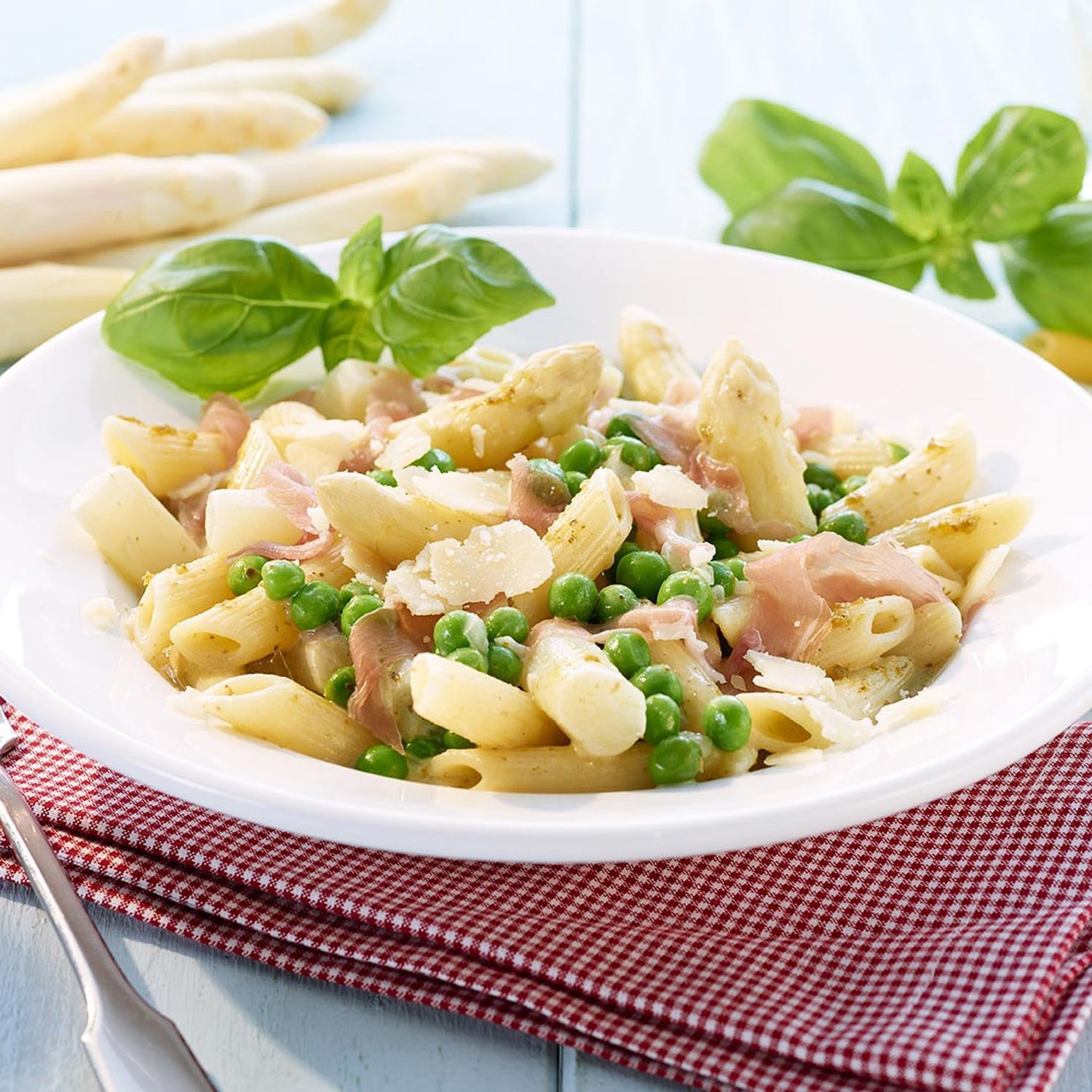 Genieße das frühlingshafte Penne-Spargel-Ragout mit Prosciutto di Parma und Pesto. Probiere es gleich nach der Schritt-für-Schritt-Anleitung aus!
