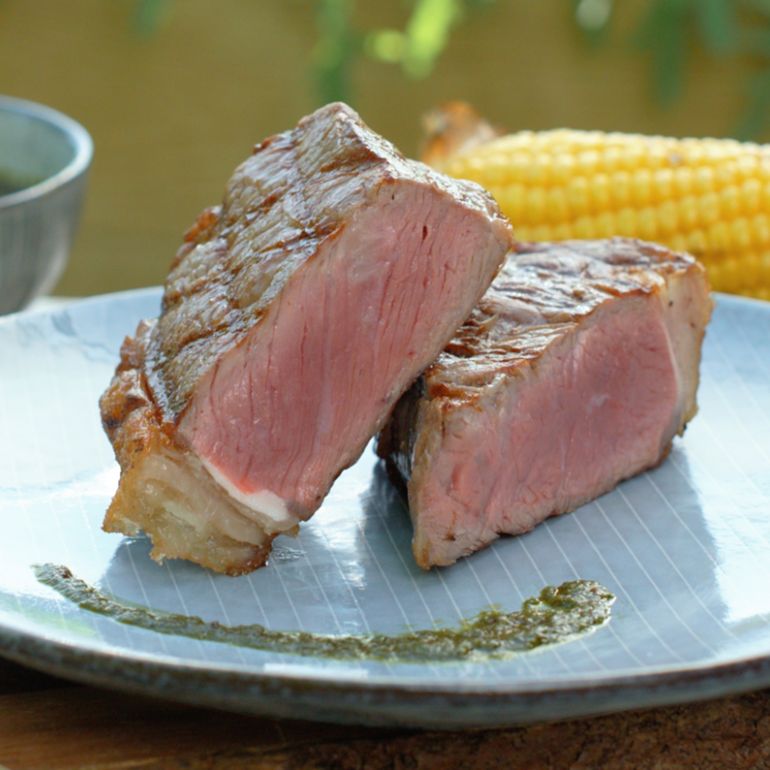Das Steak direkt über der Grillkohle platzieren und pro Seite bei einer Kerntemperatur von 54 bis 56 Grad für circa 10 Minuten grillen. Nachdem das Steak auf beiden Seiten gegrillt wurde, lässt man es ungefähr 5-10 Minuten in dem Bereich des Grillers, in dem sich keine Kohle befindet, rasten.